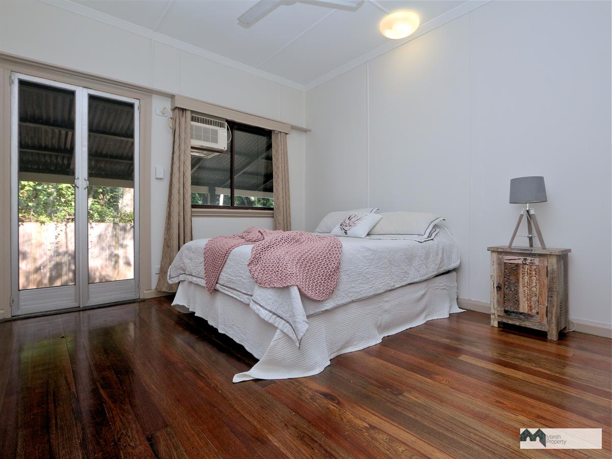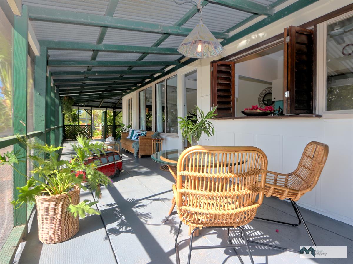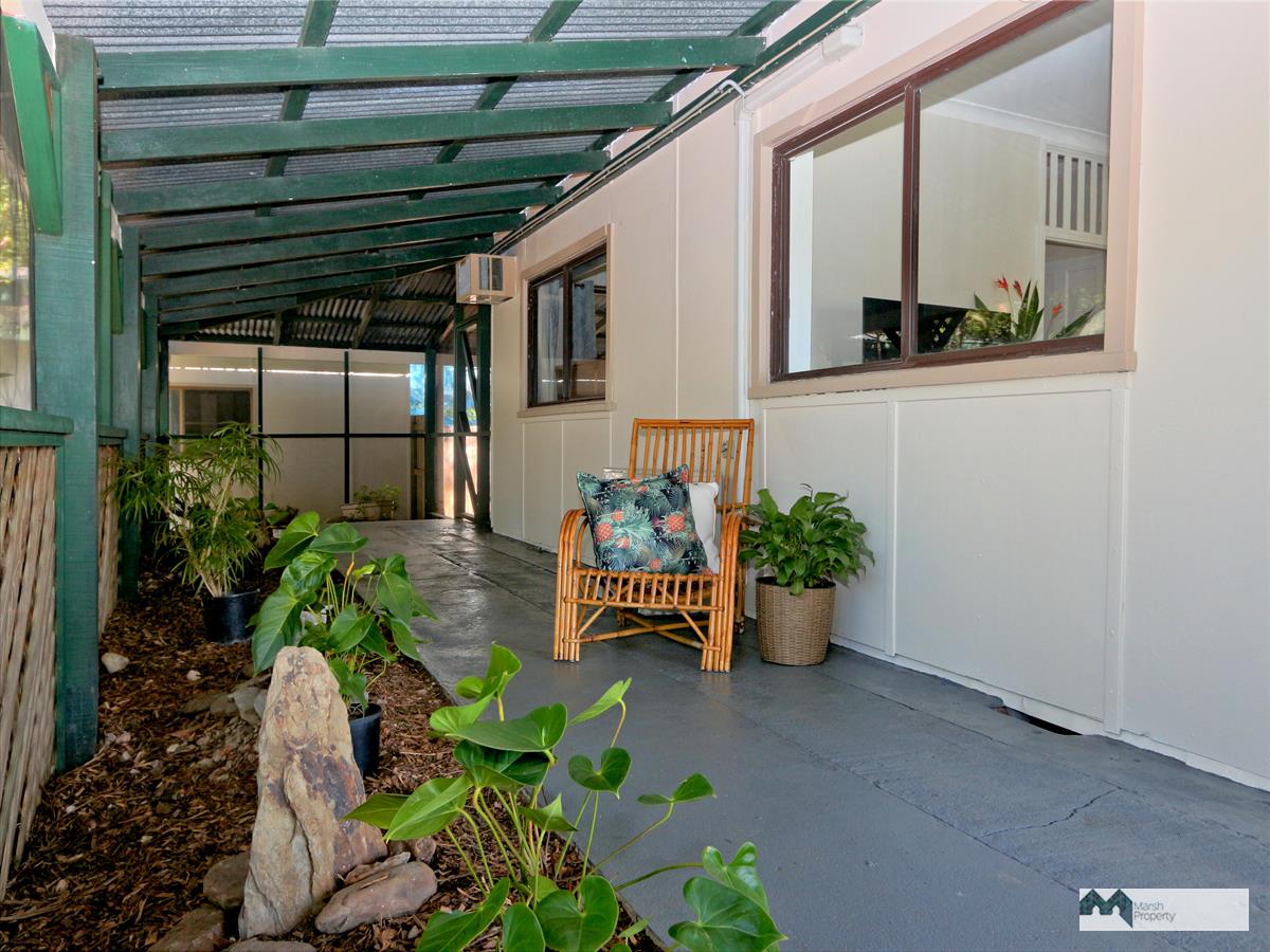 The three spacious bedrooms are all air conditioned and open through French doors to a rear patio that could be easily enhanced with further landscaping. The split rear barn door gives access from the bathroom and laundry to a huge back yard containing varieties of Citrus, Mango, Coconut, and Lychee trees. A single garage with workshop or studio space and attached carport complete this attractive package.