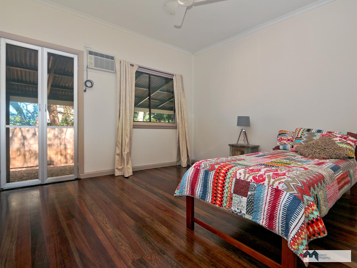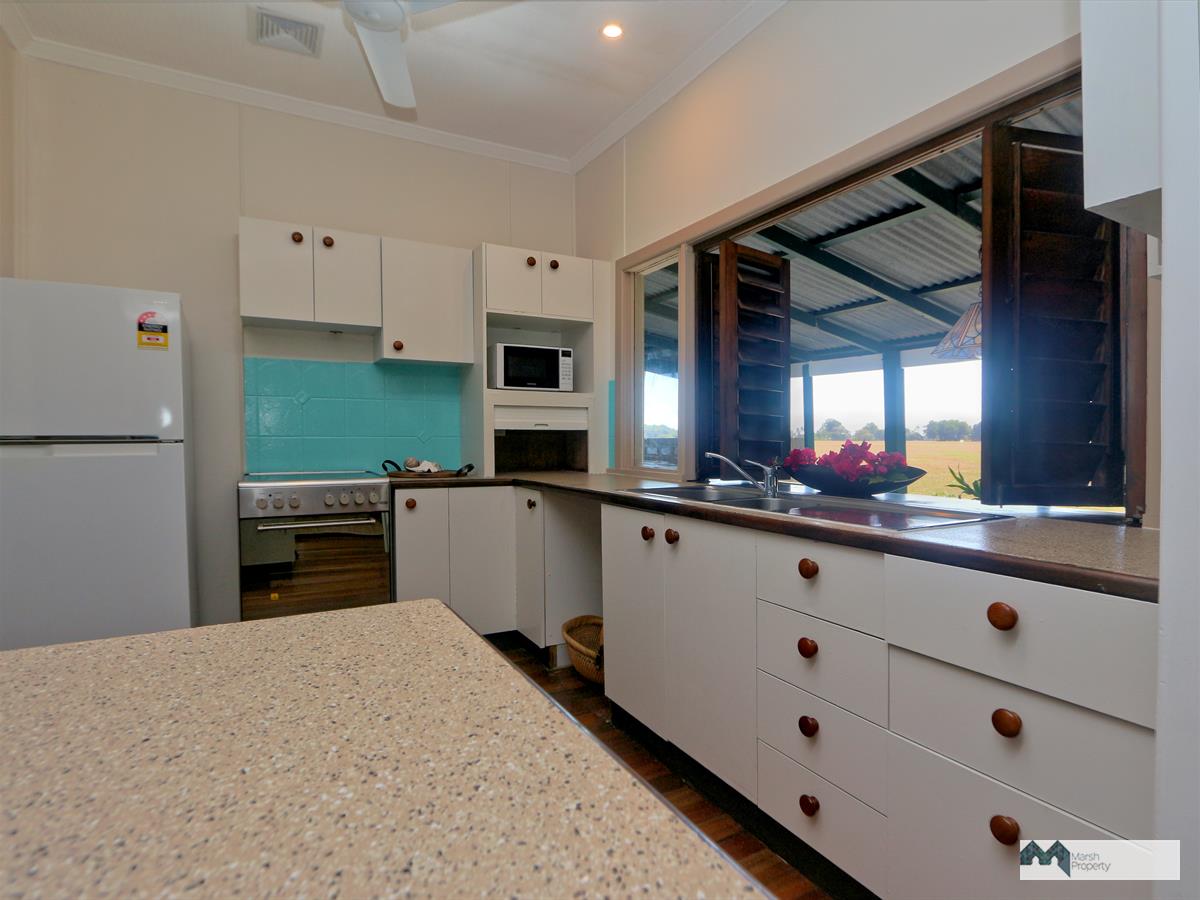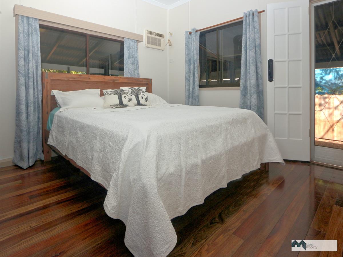 The three spacious bedrooms are all air conditioned and open through French doors to a rear patio that could be easily enhanced with further landscaping. The split rear barn door gives access from the bathroom and laundry to a huge back yard containing varieties of Citrus, Mango, Coconut, and Lychee trees. A single garage with workshop or studio space and attached carport complete this attractive package.