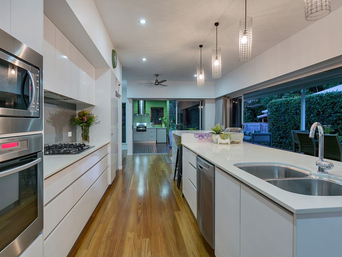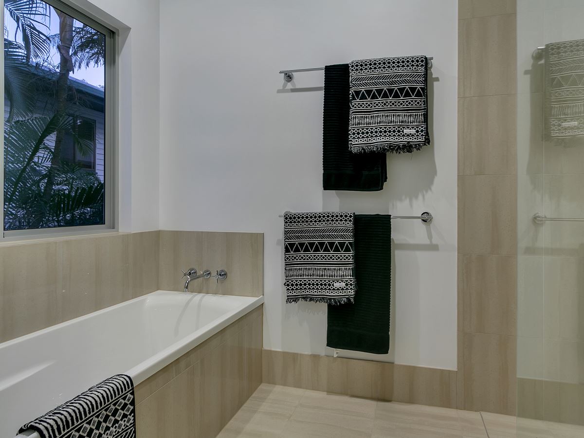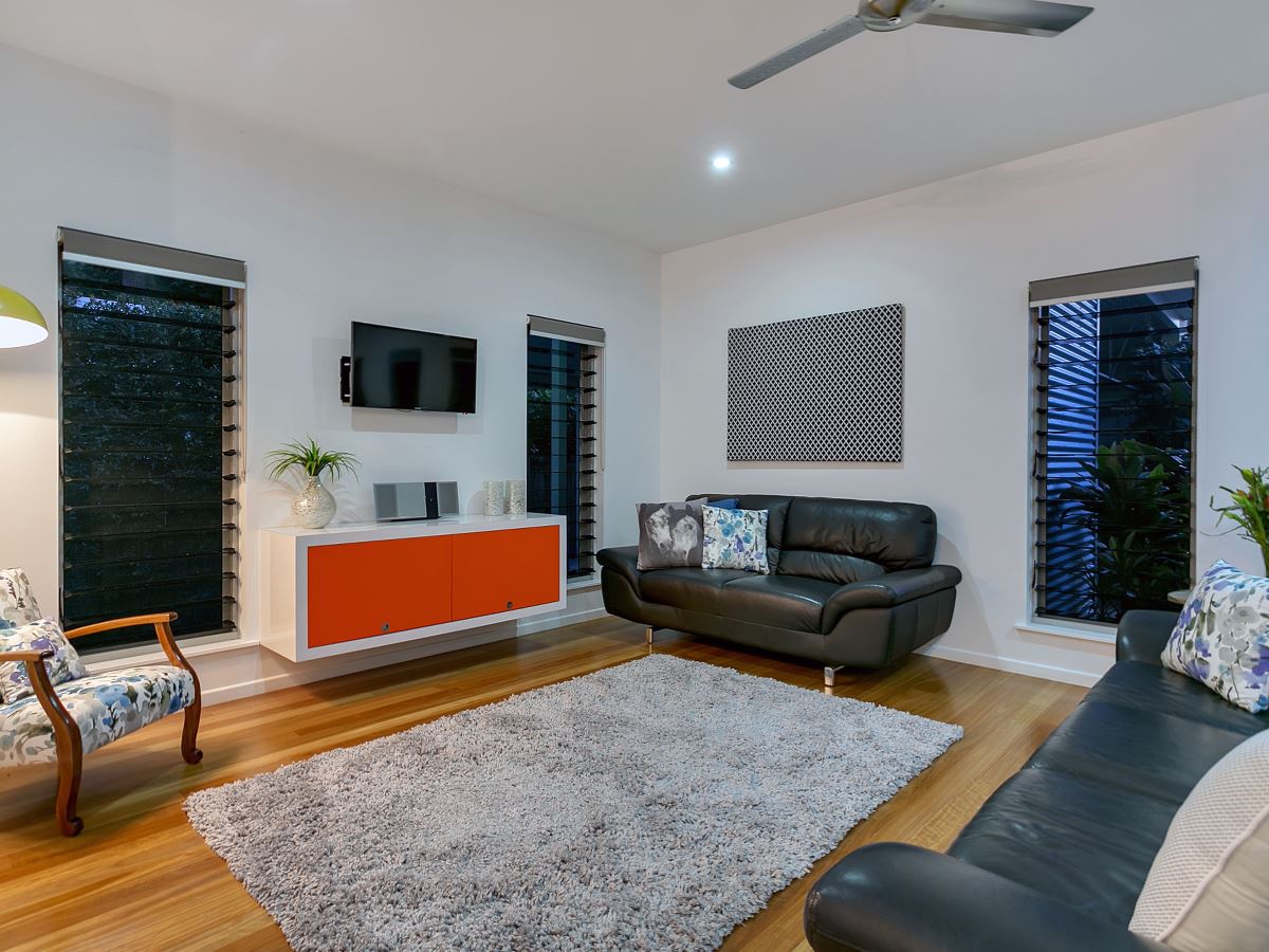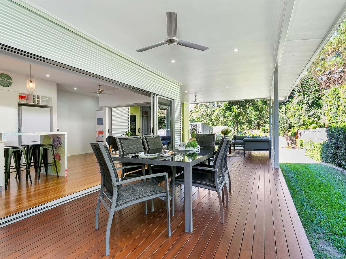 The deck overlooks the superbly fully fenced landscaped block and offers a double garage with drive through access to the back yard and 6.5m x 5m shed. The shed has power, a toilet and an outdoor shower. The yard design is just as spectacular as the house. With concrete pathways, garden edging and beautiful tropical gardens. There has been nothing forgotten in the design of this home and you cannot help but be impressed on arriving. All you need to do is turn the key and move in.