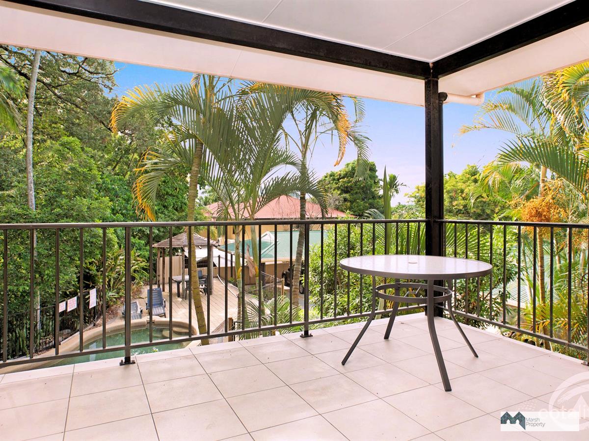 The open-plan living and dining area flows seamlessly, creating a bright, welcoming space to relax and recharge after a long day. Step out onto the elevated balcony and enjoy a quiet morning coffee or an evening breeze, with tranquil views overlooking the sparkling pool below.