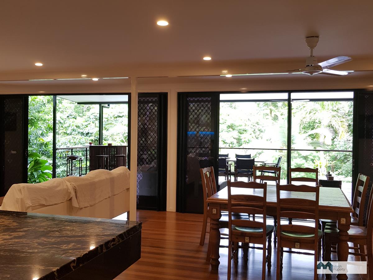This property is located on a private driveway access in Brinsmead, positioned in the rainforest with views across Redlynch Valley. Sit back & relax on the expansive timber decking overlooking the sparkling inground pool & gazebo, complete with fire pit.