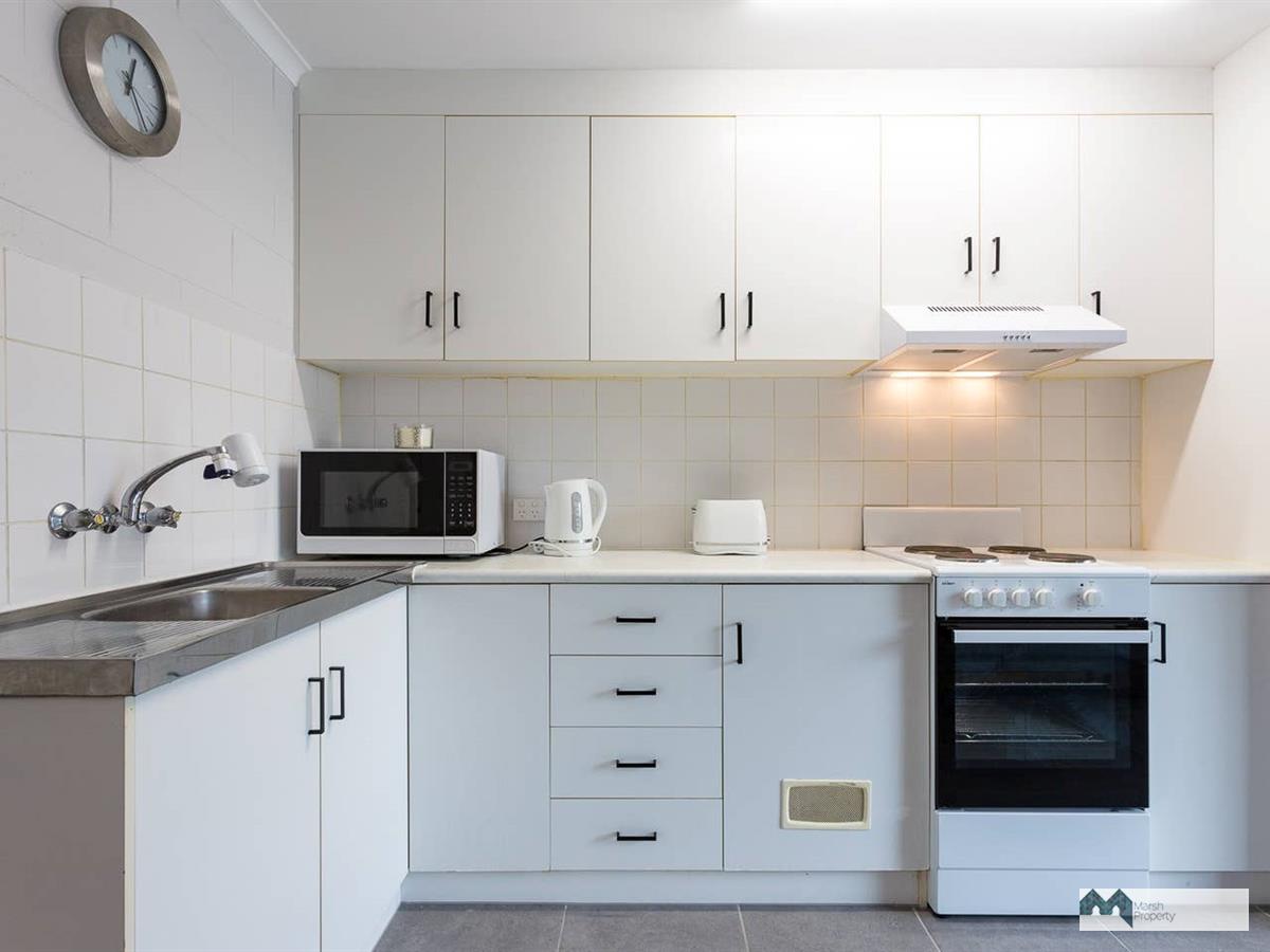 This quiet apartment complex sits on the edge of the famed Centenary Lakes and the bedroom window boasts a beautiful outlook of the tropical rainforest. The bedroom is air-conditioned and features a large built-in wardrobe.