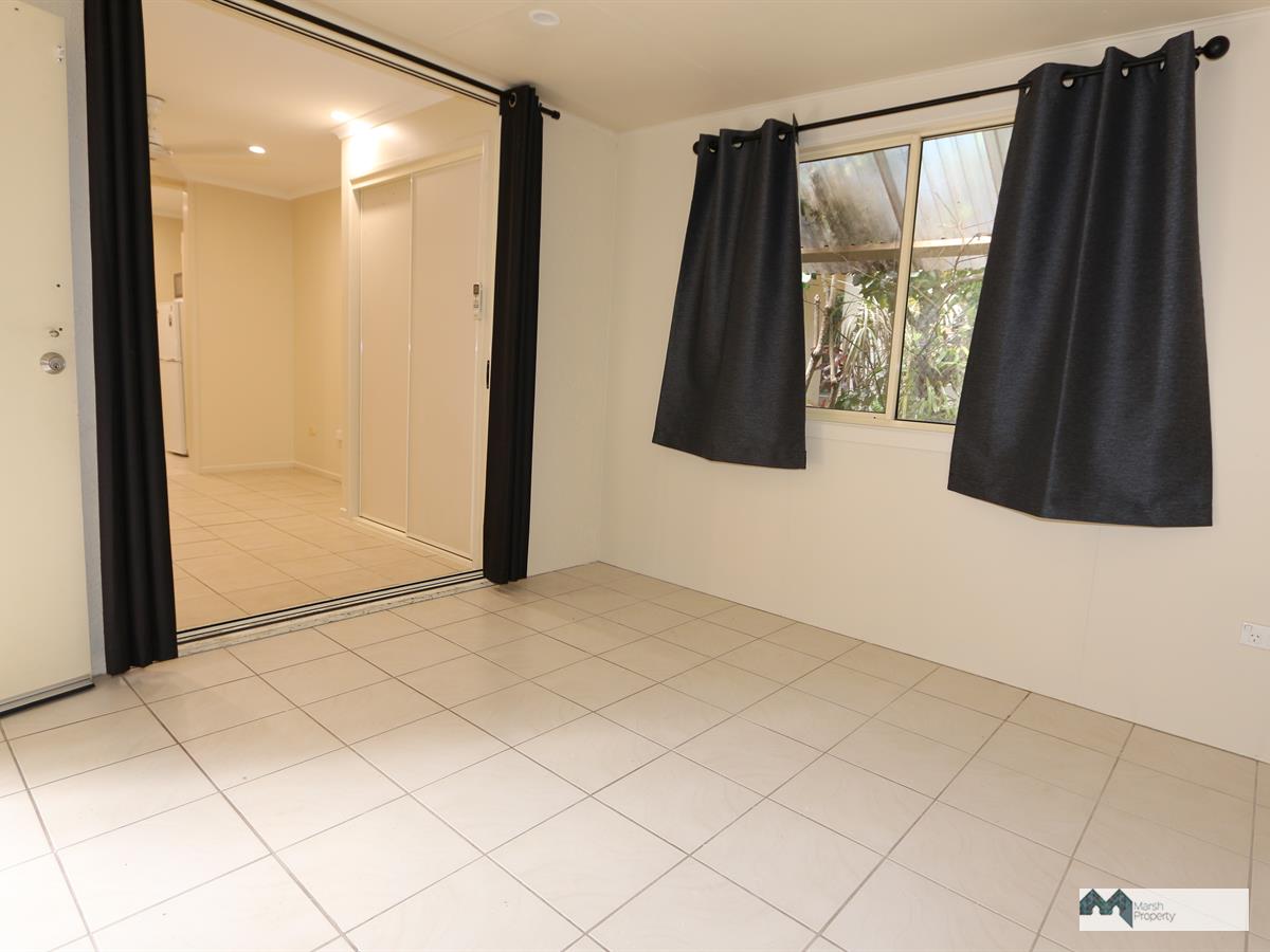 Perfect for someone looking the beach life. This studio+ is a great little space available now. Kitchenette is a good size with a large pantry and 2 fridges. The lounge/bedroom is air conditioned, has built ins, fully tiled and recently repainted. There is also a bonus room at the entry that could serve as an office or even use that as your lounge. Needs a look.