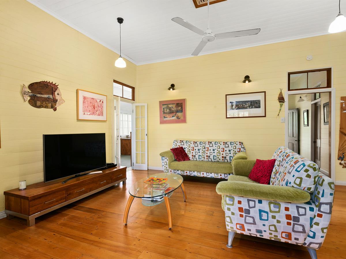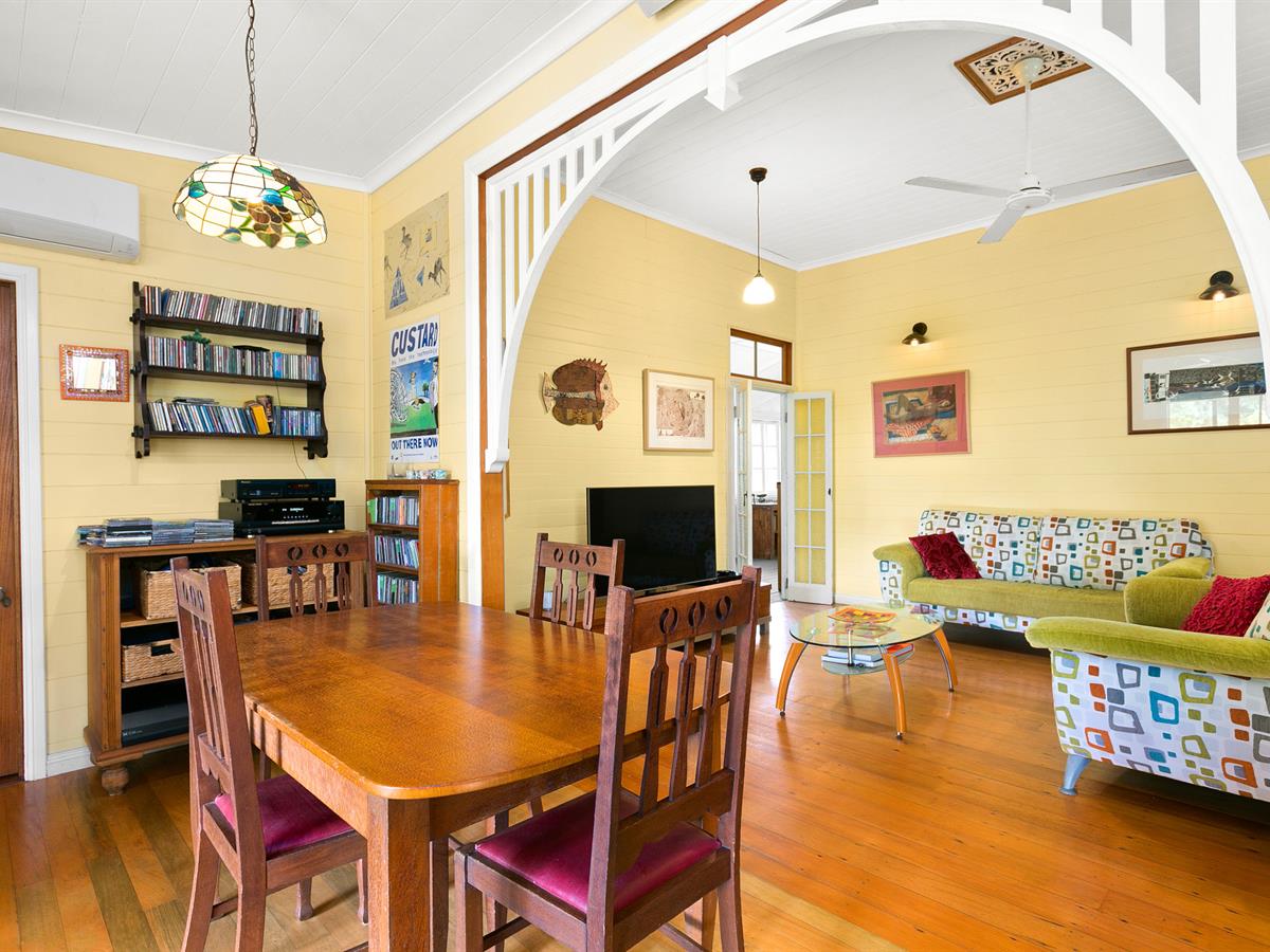 Charming two storey Queenslander comprising of four bedrooms, two bathrooms and study with timber floors and vaulted ceilings on the upper level.