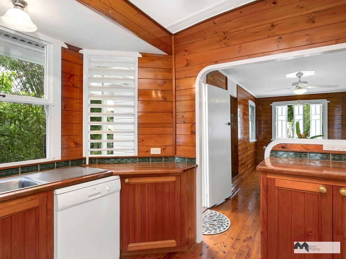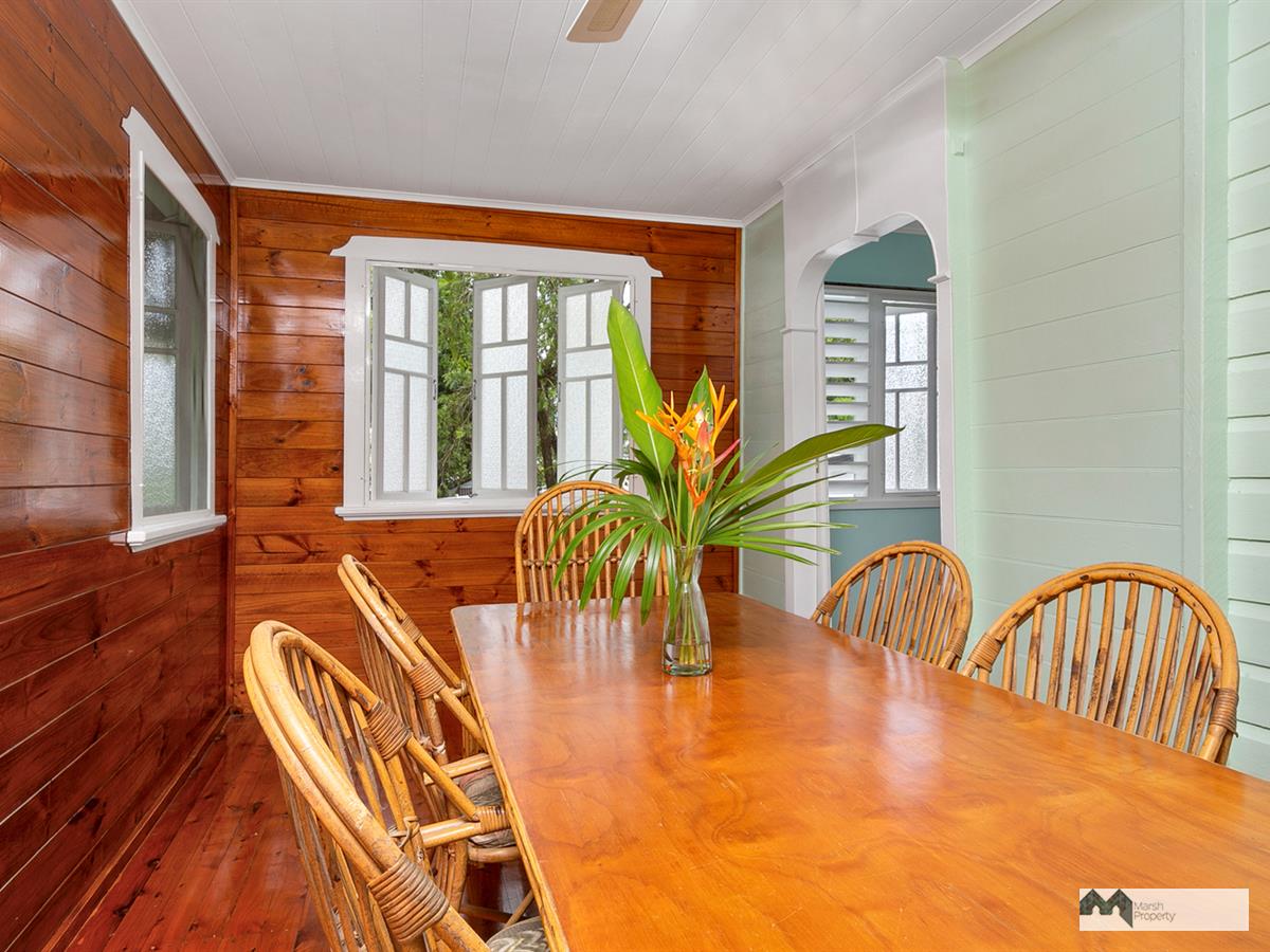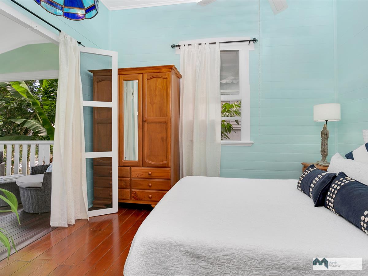 The three charming light filled bedrooms feature beautiful casement windows & matching sliding French doors through to the central living space. Two of the bedrooms open directly onto the spacious front verandah, overlooking beautiful tropical gardens which create privacy from the street front. Glowing timber floors offer a contrasting "warmth" to the cool tropical home. The very functional timber kitchen opens onto a spacious light filled dining area off the central living space.