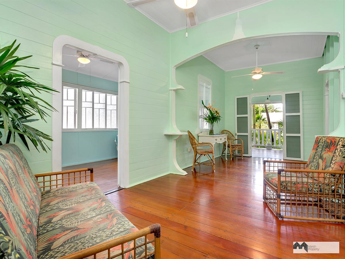 This immaculately presented Queenslander offers understated charm & a relaxed tropical village holiday lifestyle, only one street back from the waterfront in highly sought Machans Beach. The home features high ceilings throughout with interesting architectural curved lines, which create an almost nautical ambience.