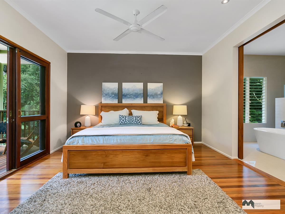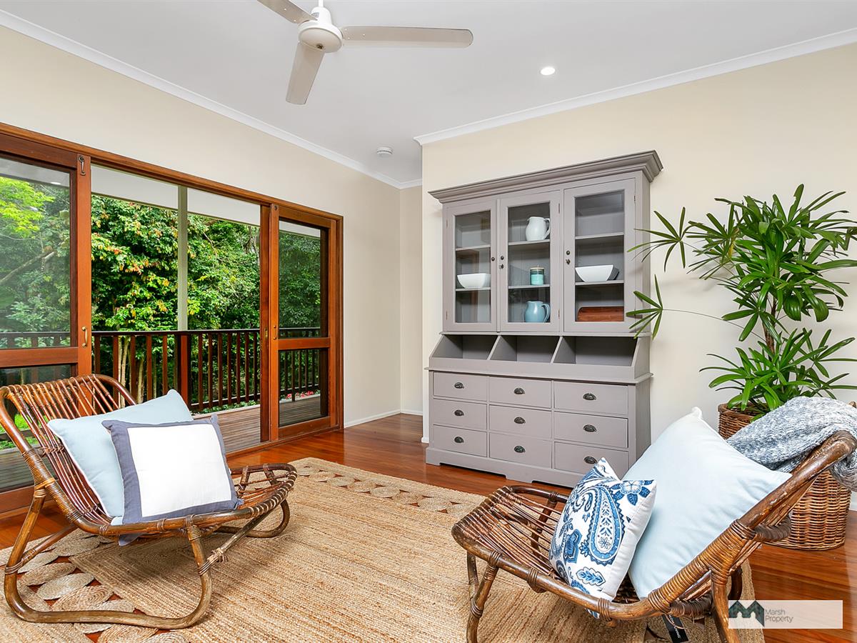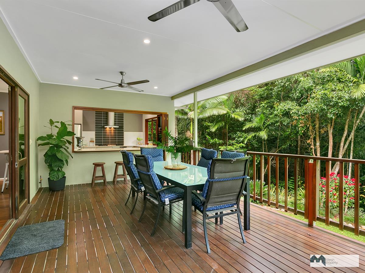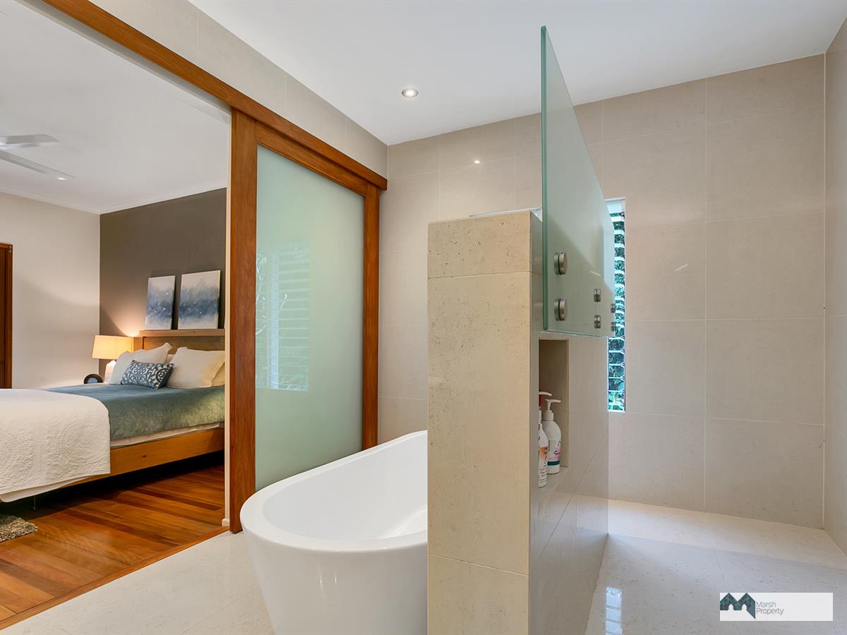 From the moment you step down from the street frontage across a man-made creek trickling over rocks through to a small ‘swimming pond’, the feeling of nature prevails. Surrounded by natural rainforest, beautiful tropical gardens and lawns, this home offers a sanctuary from the worries of the world.