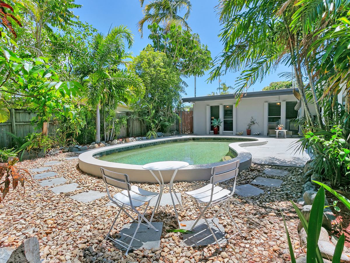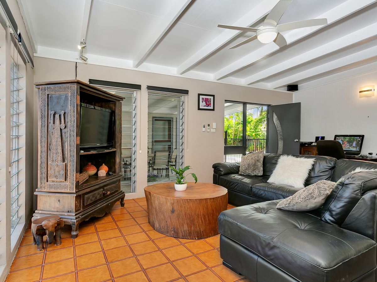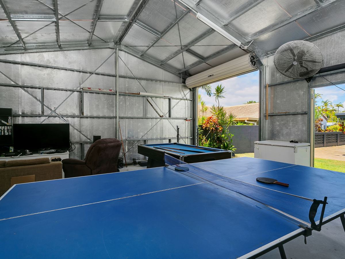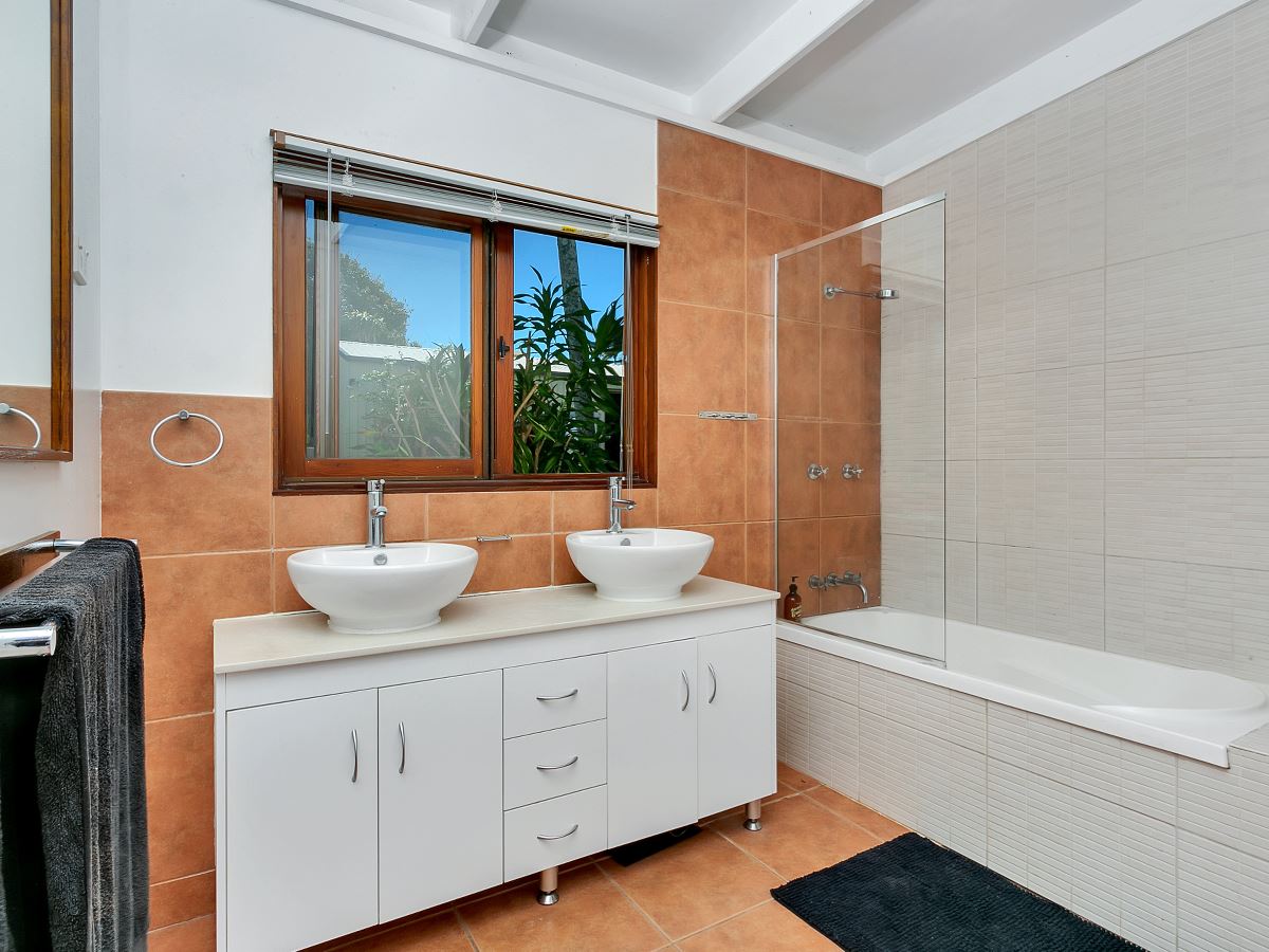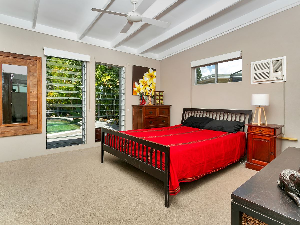Timber casement windows and lots of glass louvres add tropical style and allow for cooling summer breezes. The home also features undercover outdoor dining over looking the inground pool and bbq area.