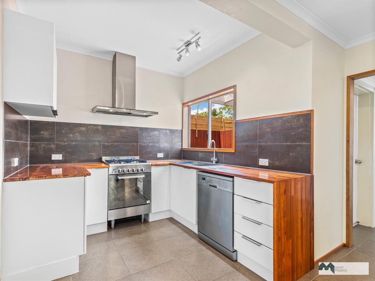 The carport has been enclosed with brushbox gating which creates an inviting private courtyard upon entry. New tiles have been laid throughout downstairs and the kitchen shines with timber benches and a bespoke stainless sink. Additional storage ideas will surprise, while a small outdoor rear deck incorporating laundry fittings leads to rear entry and a garden lockup.