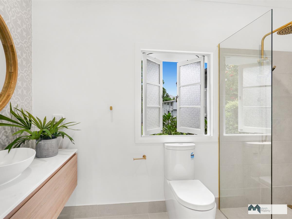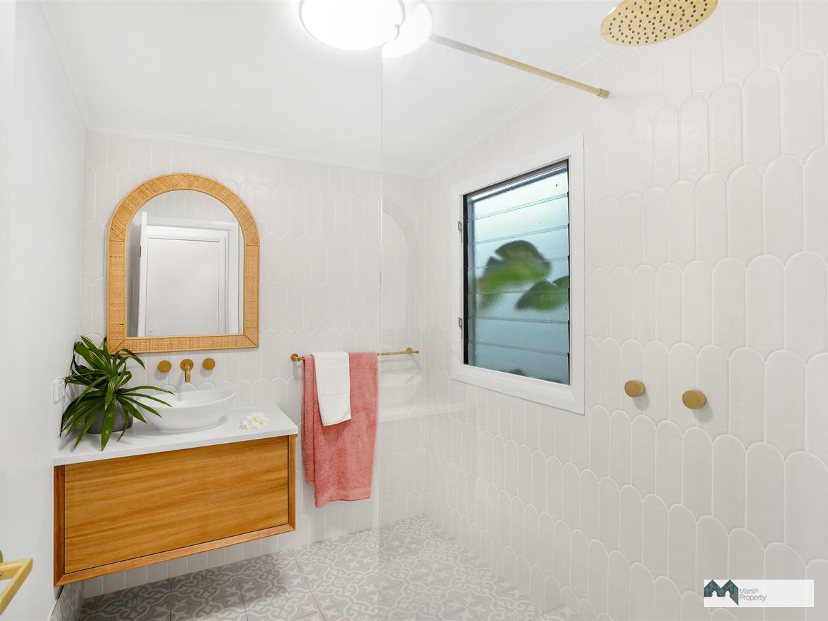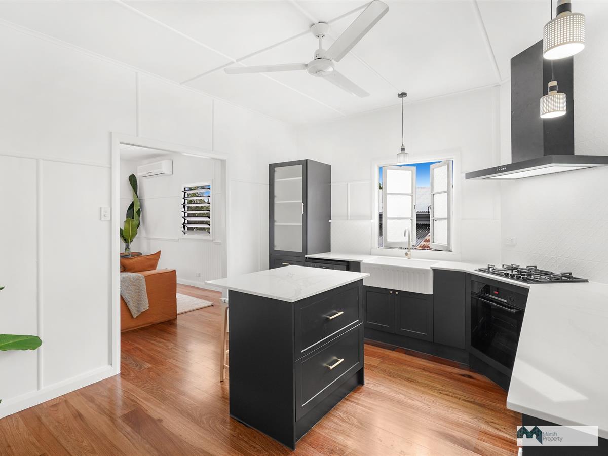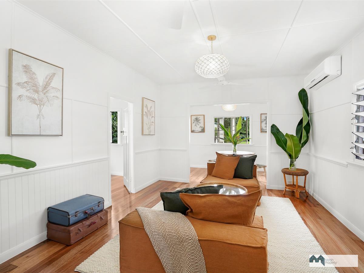Sitting proudly on an 809m2 block this beautifully renovated cottage features three bedrooms, including new main/studio with ensuite, walk-through robe and dual entry. Lovers of Hamptons style will appreciate the new bathroom and stylish kitchen with a servery opening onto the 100m2 alfresco dining deck overlooking easy care tropical gardens. A generous air conditioned lounge with original high ceilings and gorgeous timber floors is accessed via the street side entry foyer and flows through to the kitchen.
