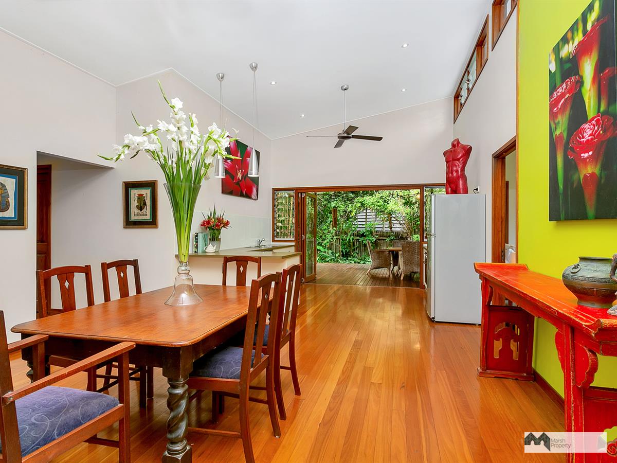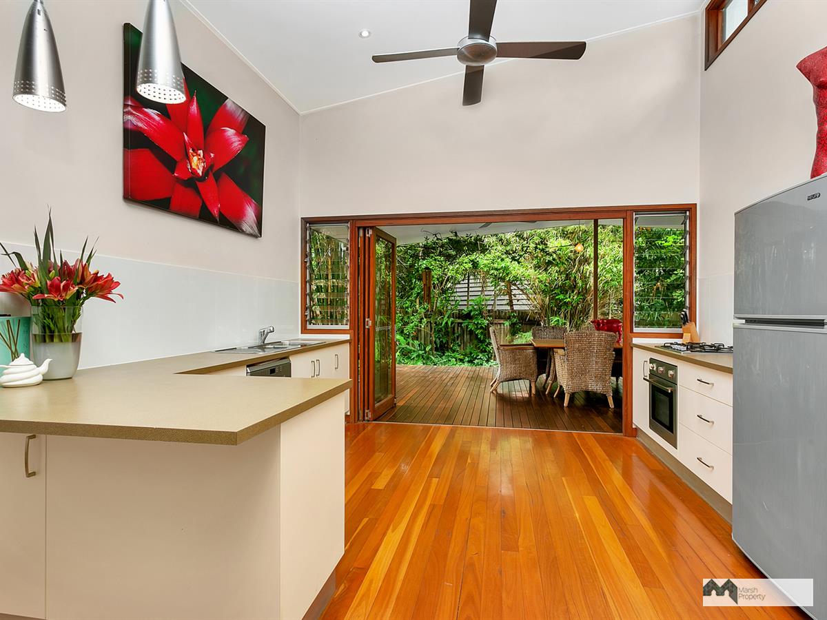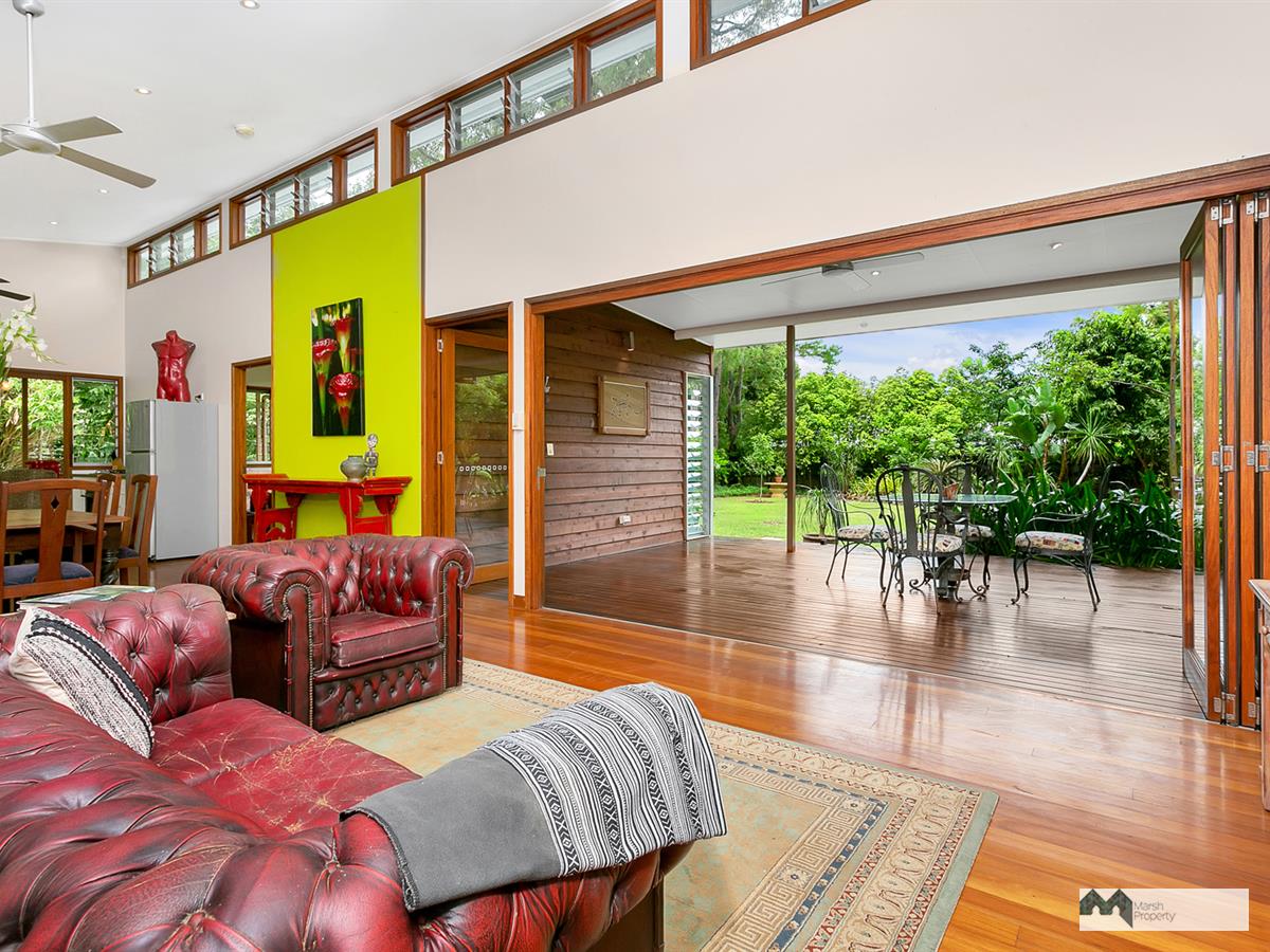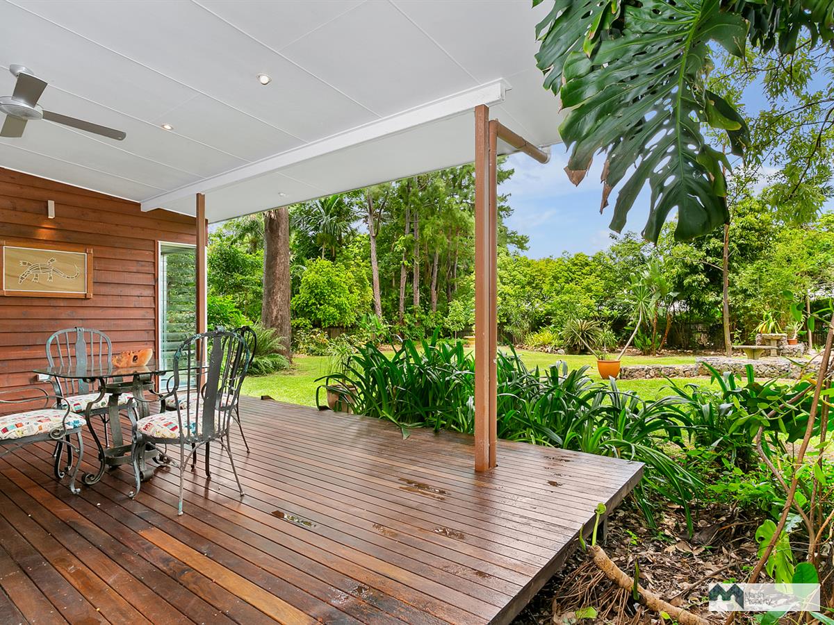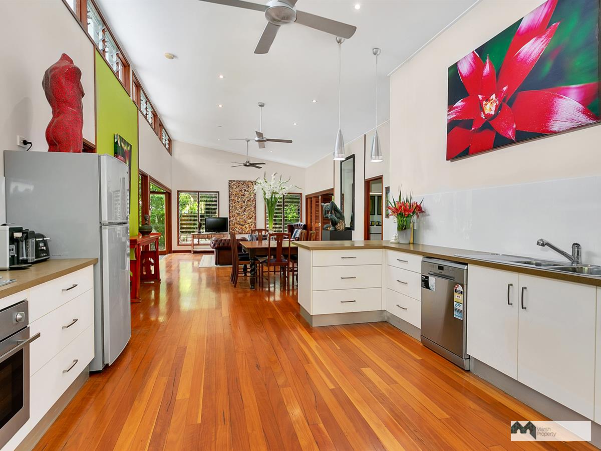 Relaxed open plan living with high ceilings and fabulous cross-flow ventilation is at its heart. A well-appointed kitchen, which features sit-up breakfast bar and stainless steel appliances, flows through to a 45sqm covered dining deck overlooking the established gardens and water features.
