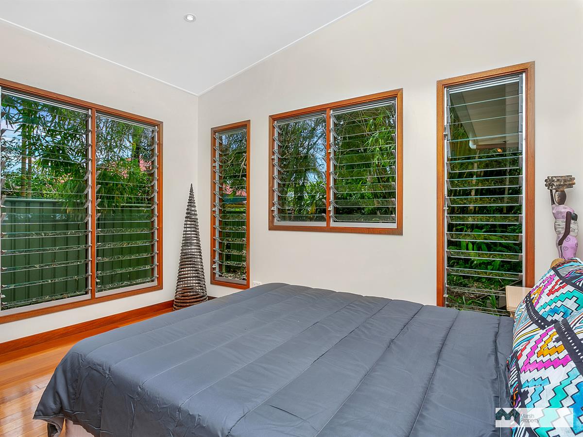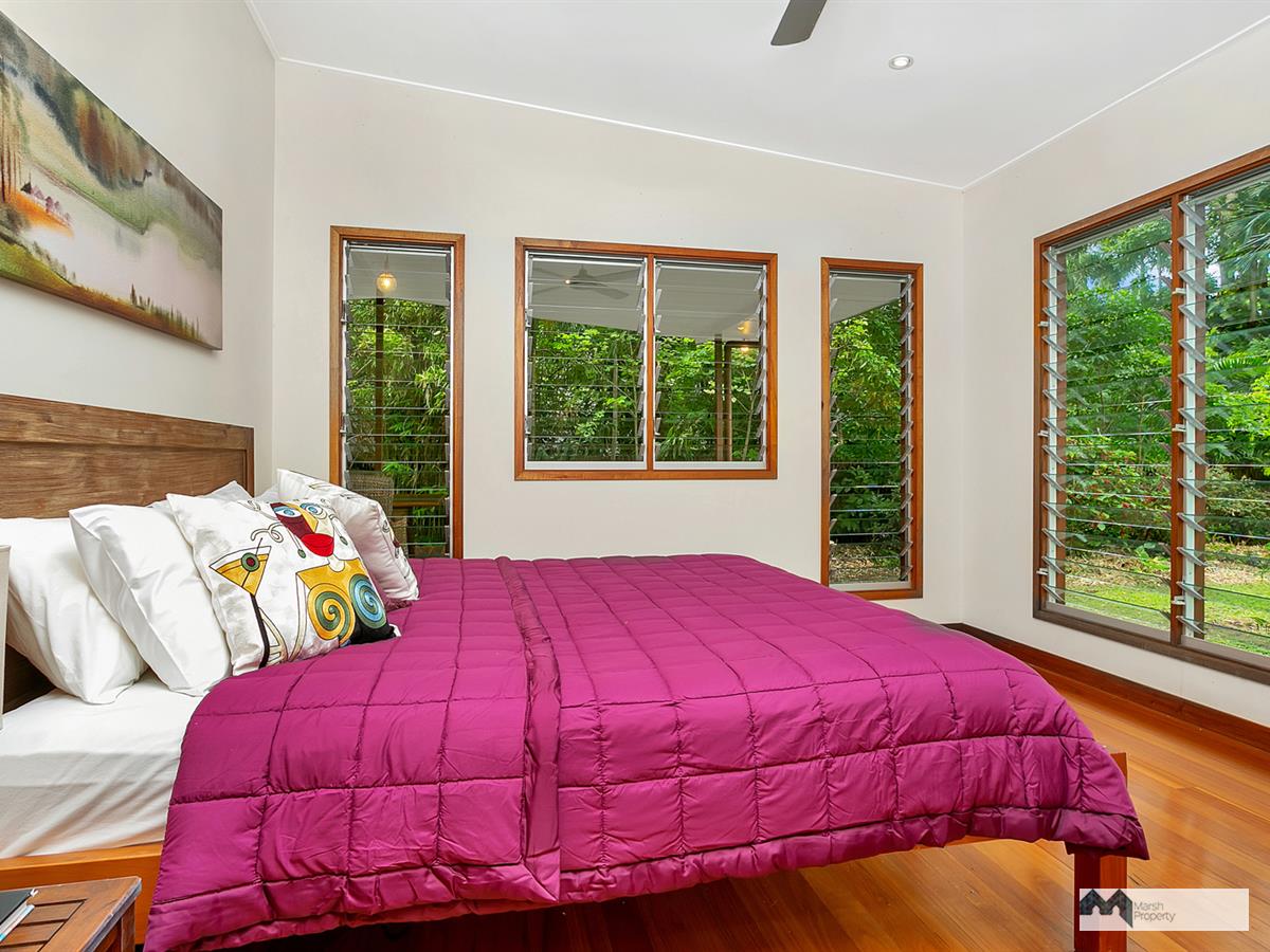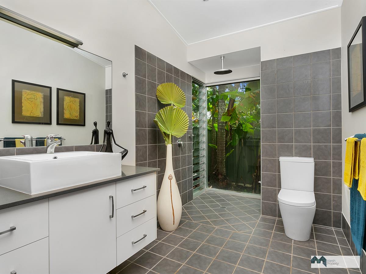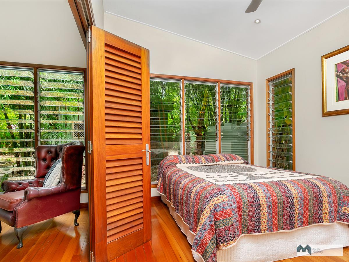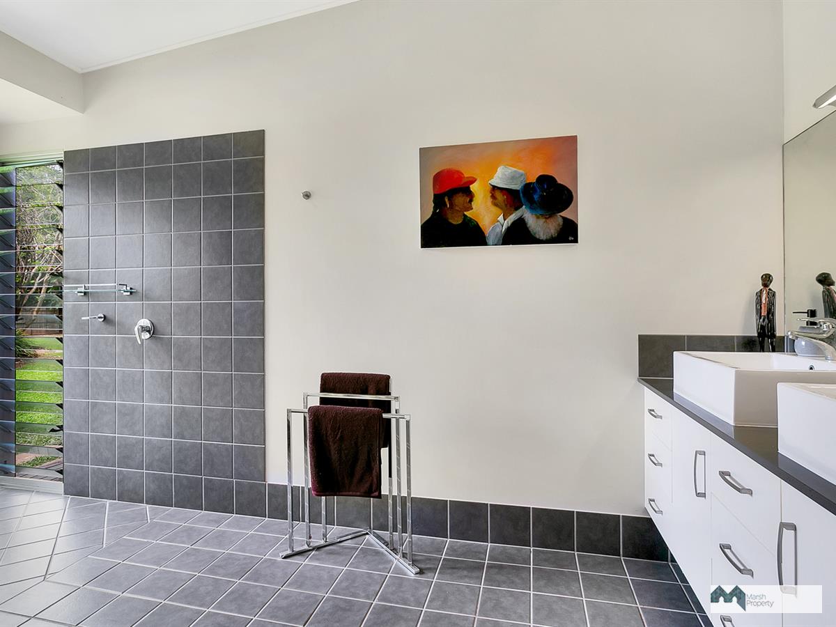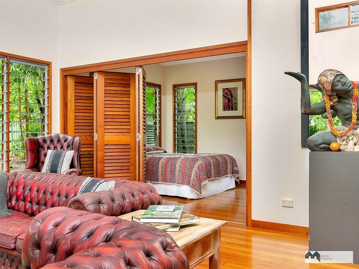 Relaxed open plan living with high ceilings and fabulous cross-flow ventilation is at its heart. A well-appointed kitchen, which features sit-up breakfast bar and stainless steel appliances, flows through to a 45sqm covered dining deck overlooking the established gardens and water features.