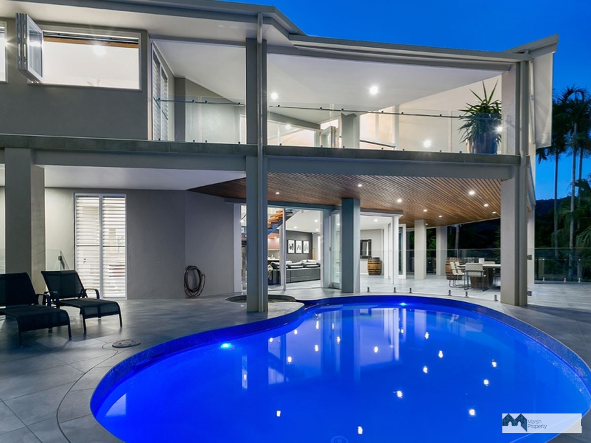 Setting a new benchmark for cutting- edge contemporary living in the hills overlooking Cairns City, this luxurious home is a showcase of decadent luxury with remarkable panoramic views that sweep across the city skyline to Green Island and beyond.