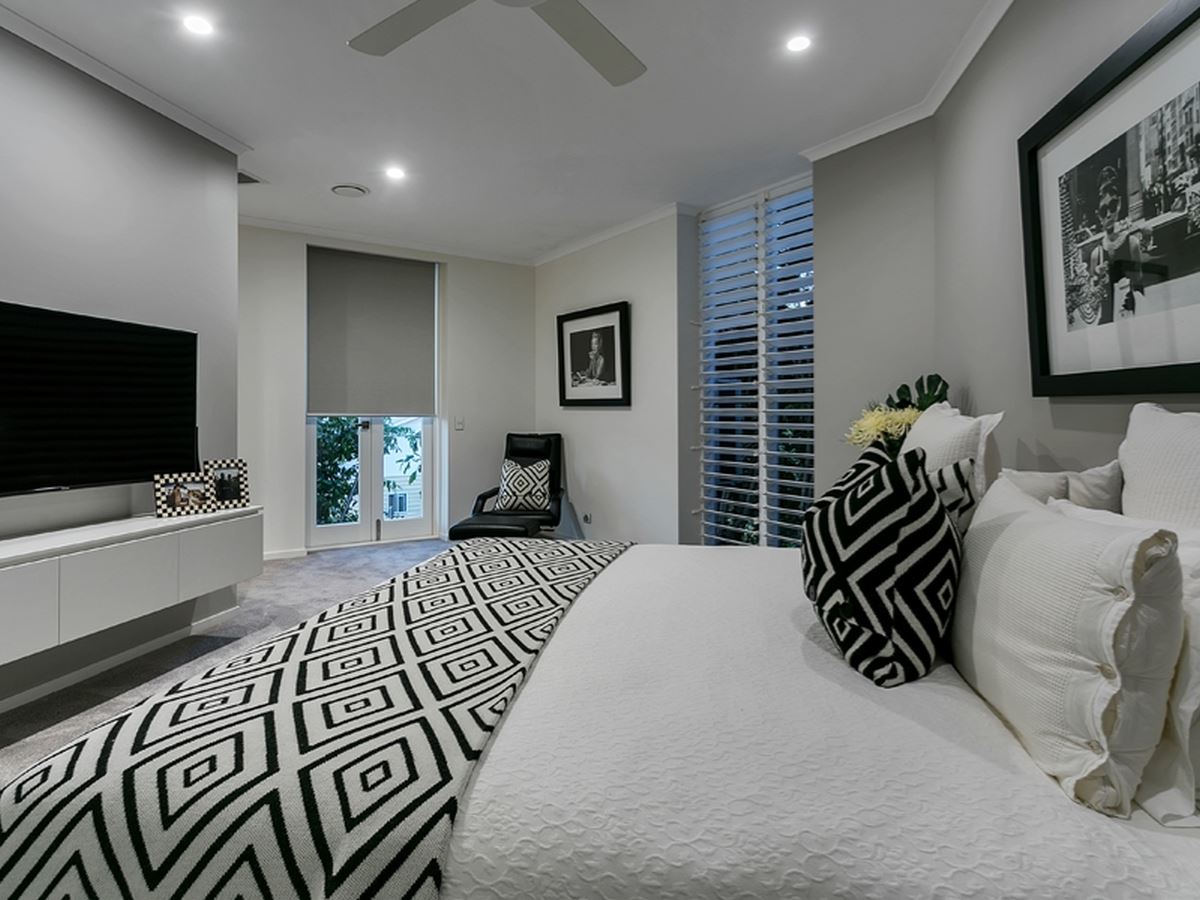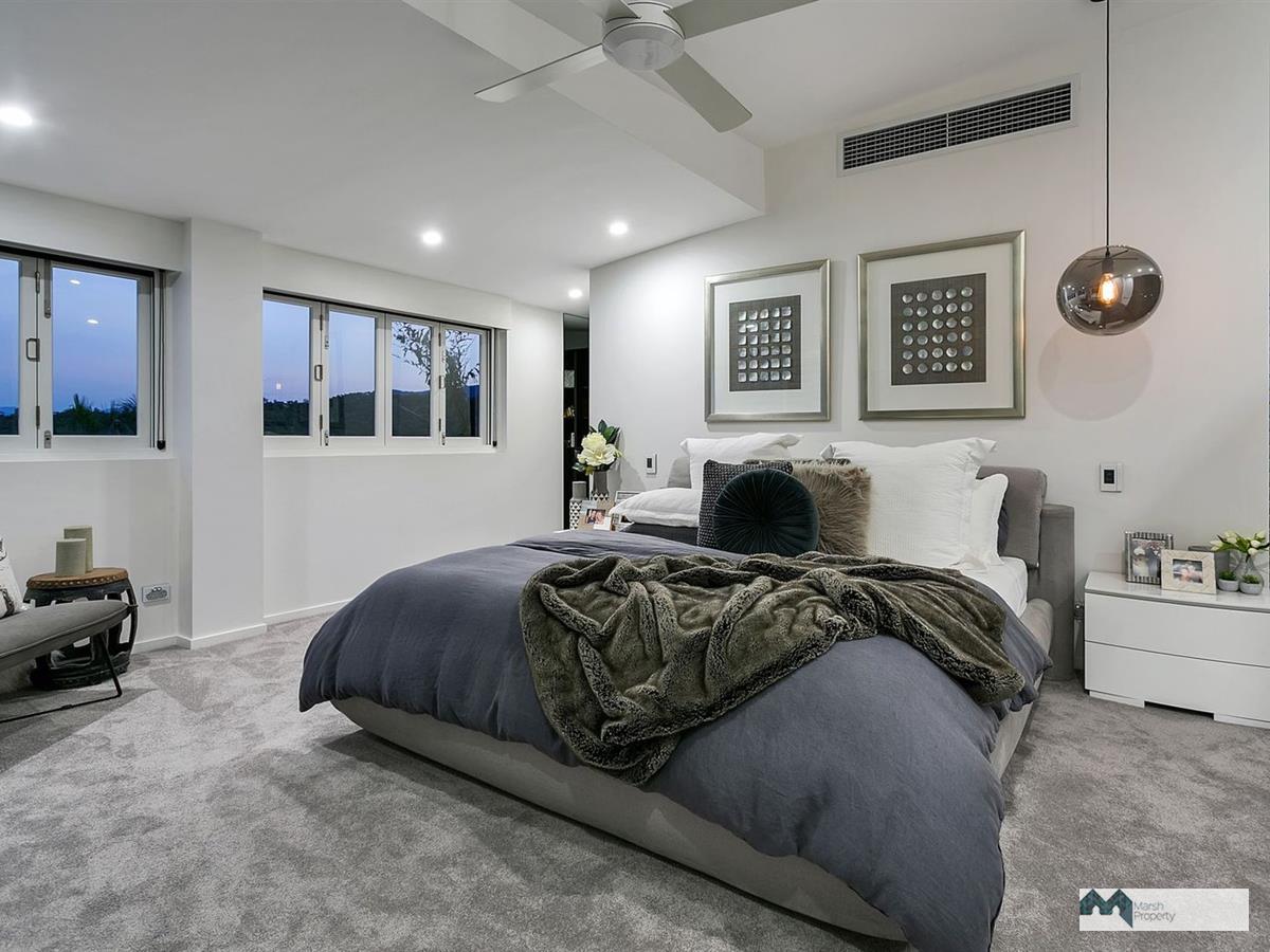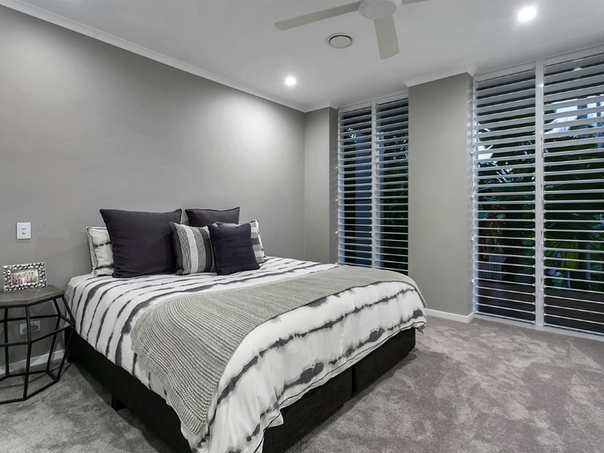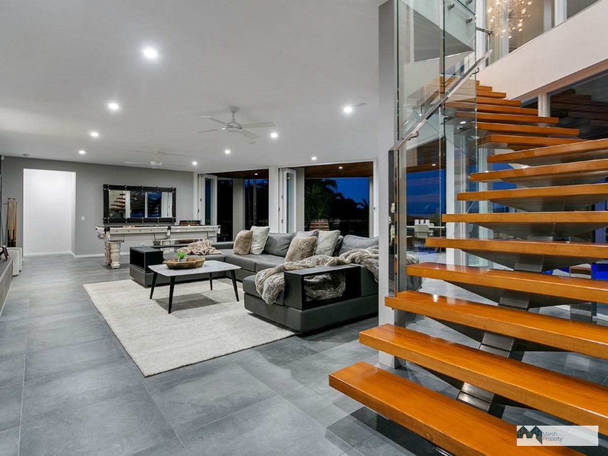 Inspired by the tropical outlook, it features satin ceramic flooring throughout with minimalist lines and expanses of glass, ensuring the view is always the focal point. Privileged, private and exclusive, a spacious open-plan living and dining area has seamless access to the alfresco dining space on the expansive upper deck through a wall of glass that brings the upper and lower internal living spaces out onto both the terraces. The kitchen is an oasis of culinary excellence appealing to the gourmand with its generous walk-in pantry, Euro door fridge and glamorous stone island bench.