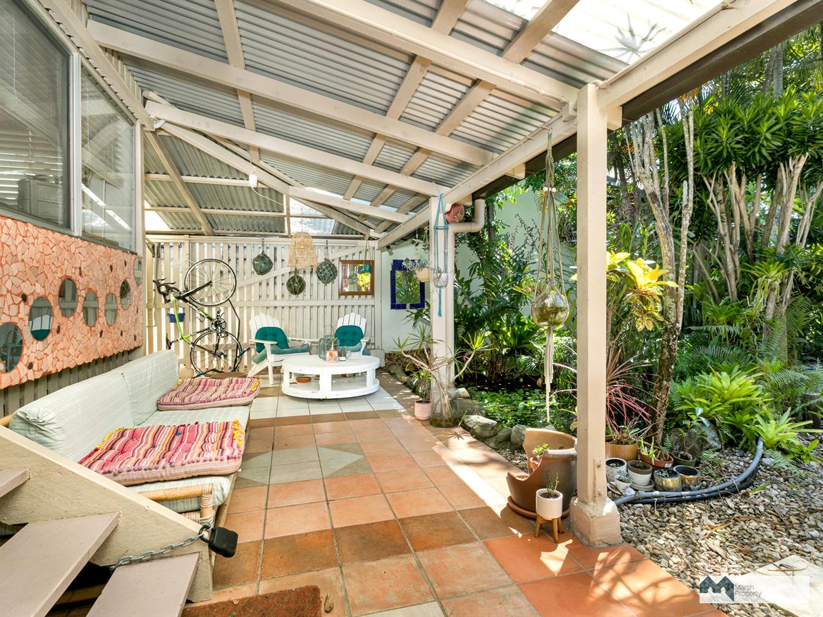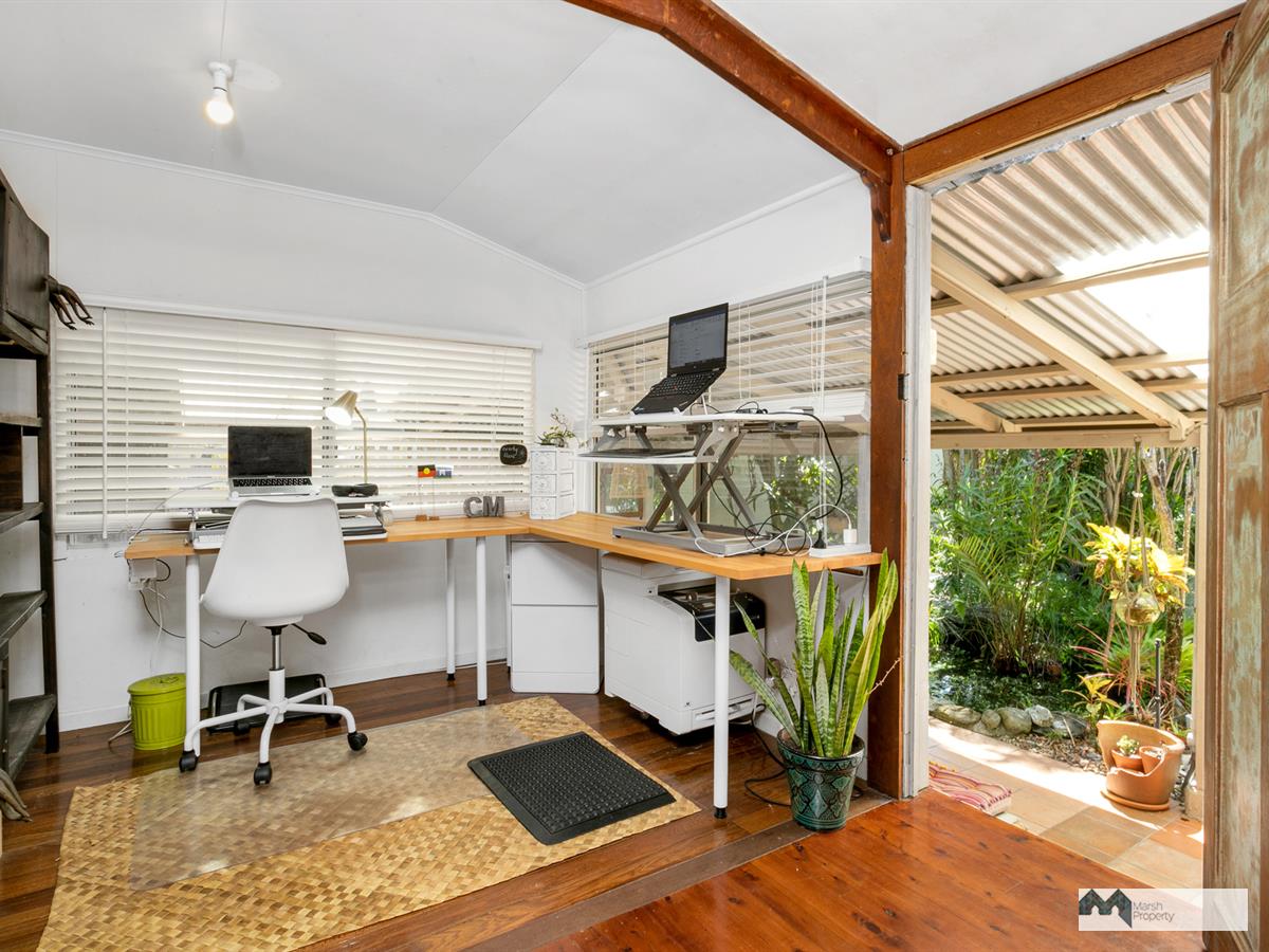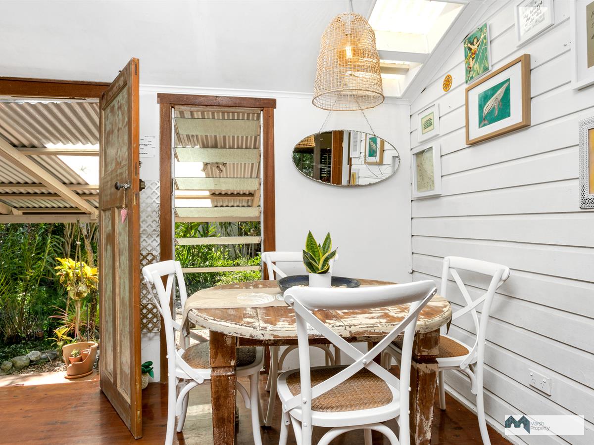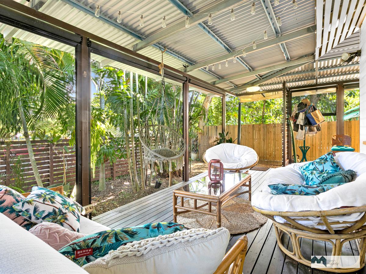 Two bedrooms, office space, open plan kitchen & lounge, a delightful wet bathroom with bath, a fabulous screened front verandah for dining or lounging plus a rear outdoor patio area overlooking the fish pond are just some of the features you will immediately engage with. There is even an outdoor shower cleverly & privately tucked against the side of the house, overlooking the fabulous tropical back gardens featuring a small gazebo style day bed.