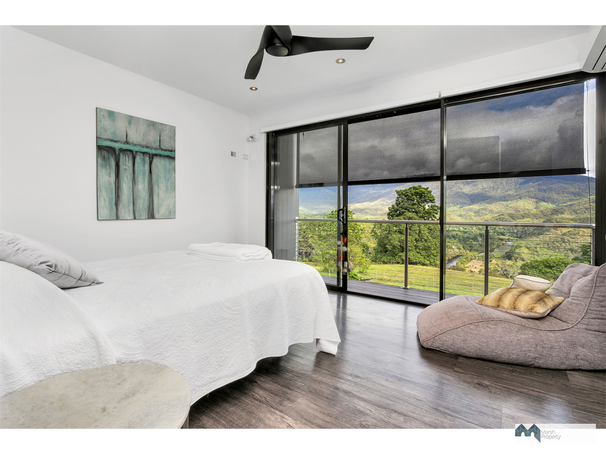 The level of finish in the home is extraordinary, there is simply nothing to do. A large solar array with battery storage and substantial water tank servicing the home add to the self-contained amenity and the garage is large enough to store most of the toys. A beautiful juxtaposition of contemporary rural living only 30 minutes from Cairns yet far from the madding crowd.
