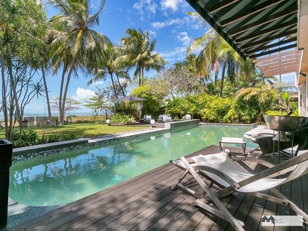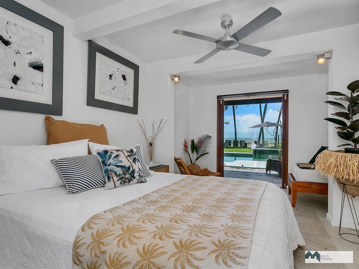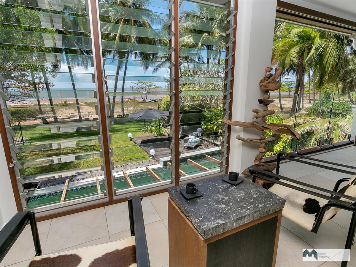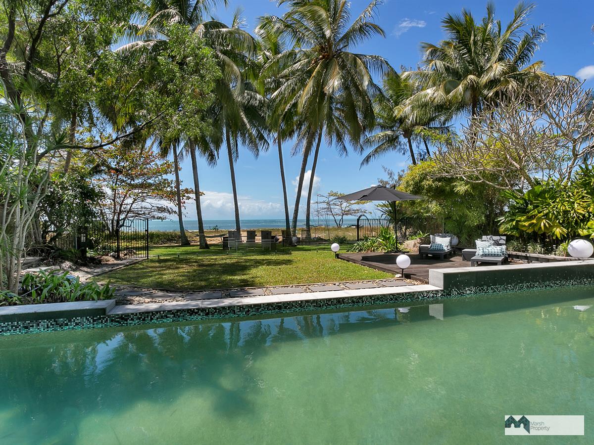 Step directly onto the sands of magical Cinderella St. & see why this is one of the most desirable streets, not just in Cairns, but the entire Far Nth. Qld. region. This home has been designed to create a private resort style vibe where every day feels like a holiday. “Six Palms” was named for the 6 coconuts palms on the beachfront, framing the stunning Coral Sea views visible from almost every room in the home.