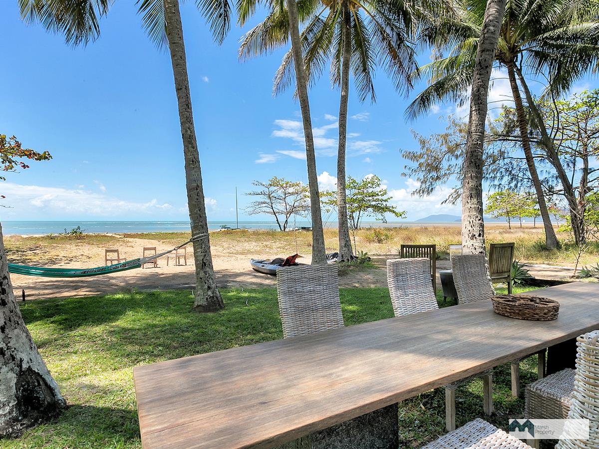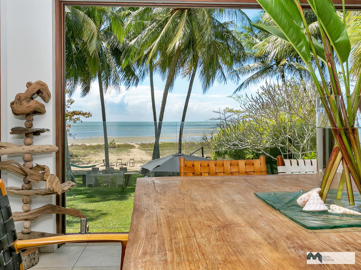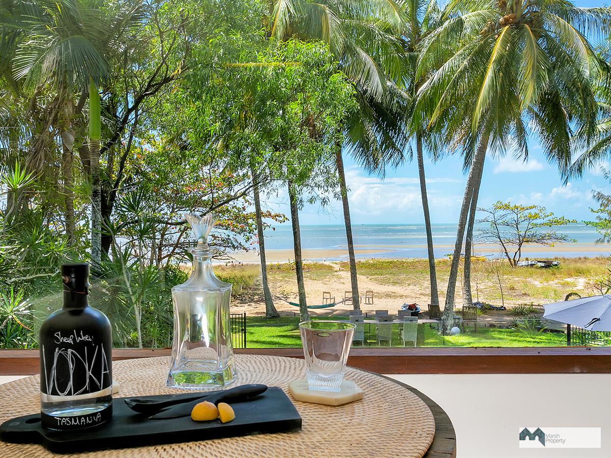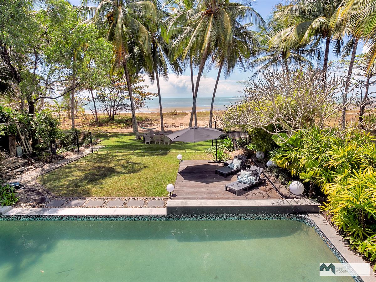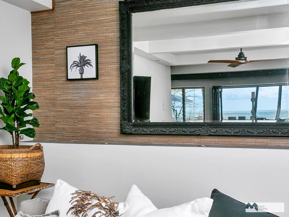 Step directly onto the sands of magical Cinderella St. & see why this is one of the most desirable streets, not just in Cairns, but the entire Far Nth. Qld. region. This home has been designed to create a private resort style vibe where every day feels like a holiday. “Six Palms” was named for the 6 coconuts palms on the beachfront, framing the stunning Coral Sea views visible from almost every room in the home.
