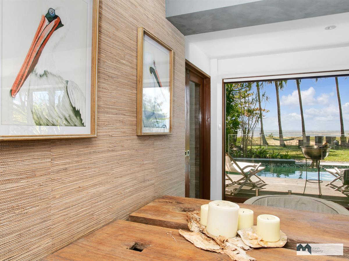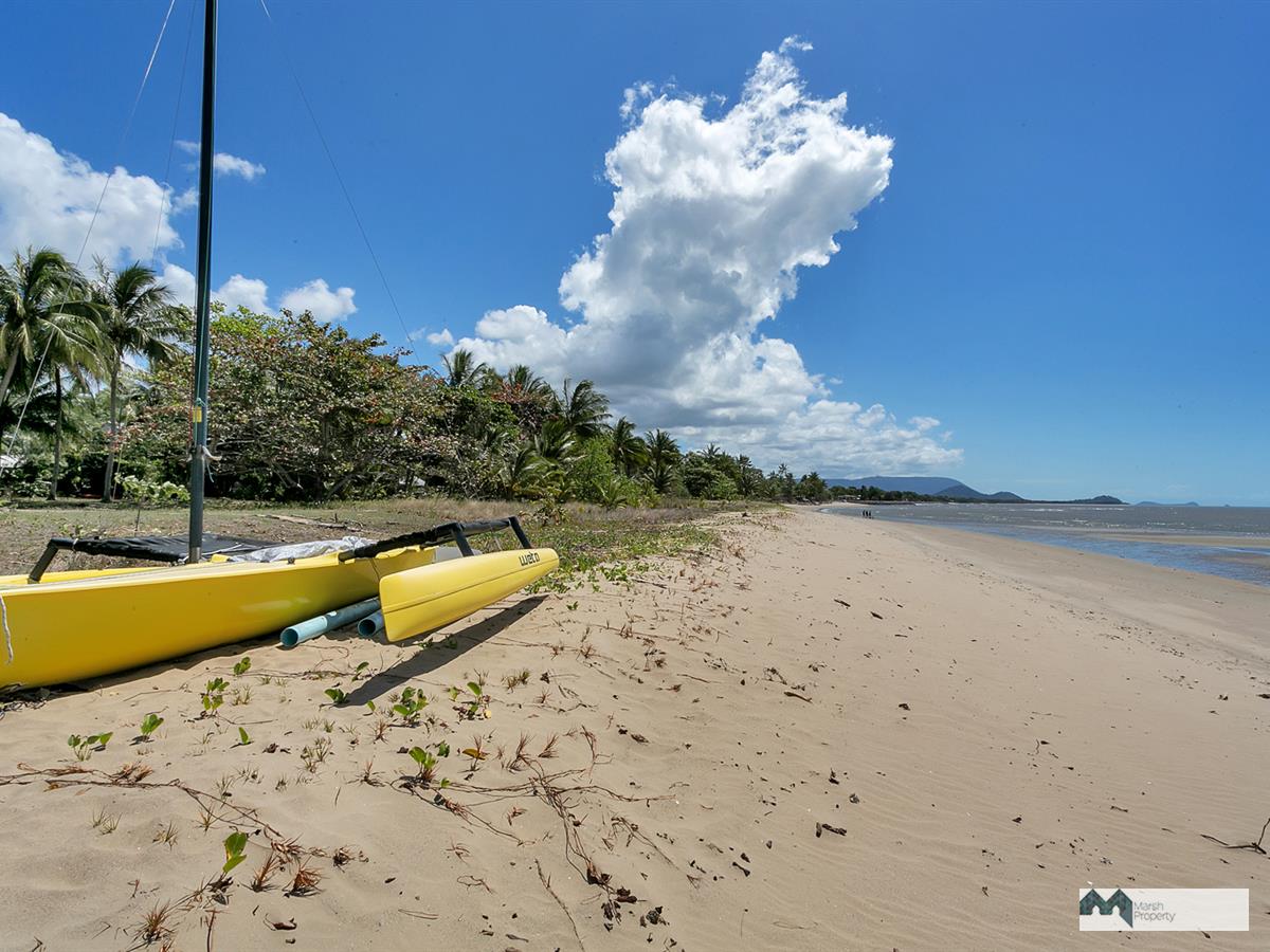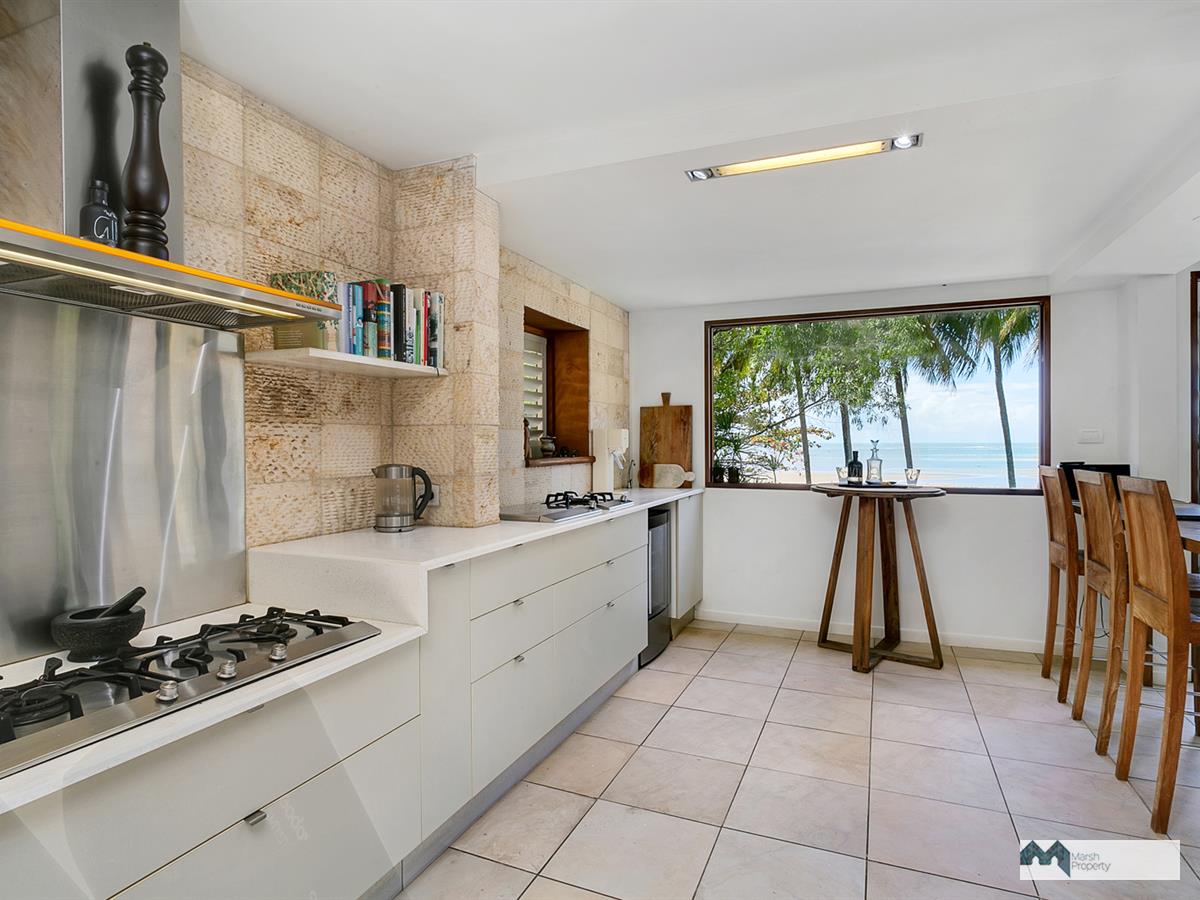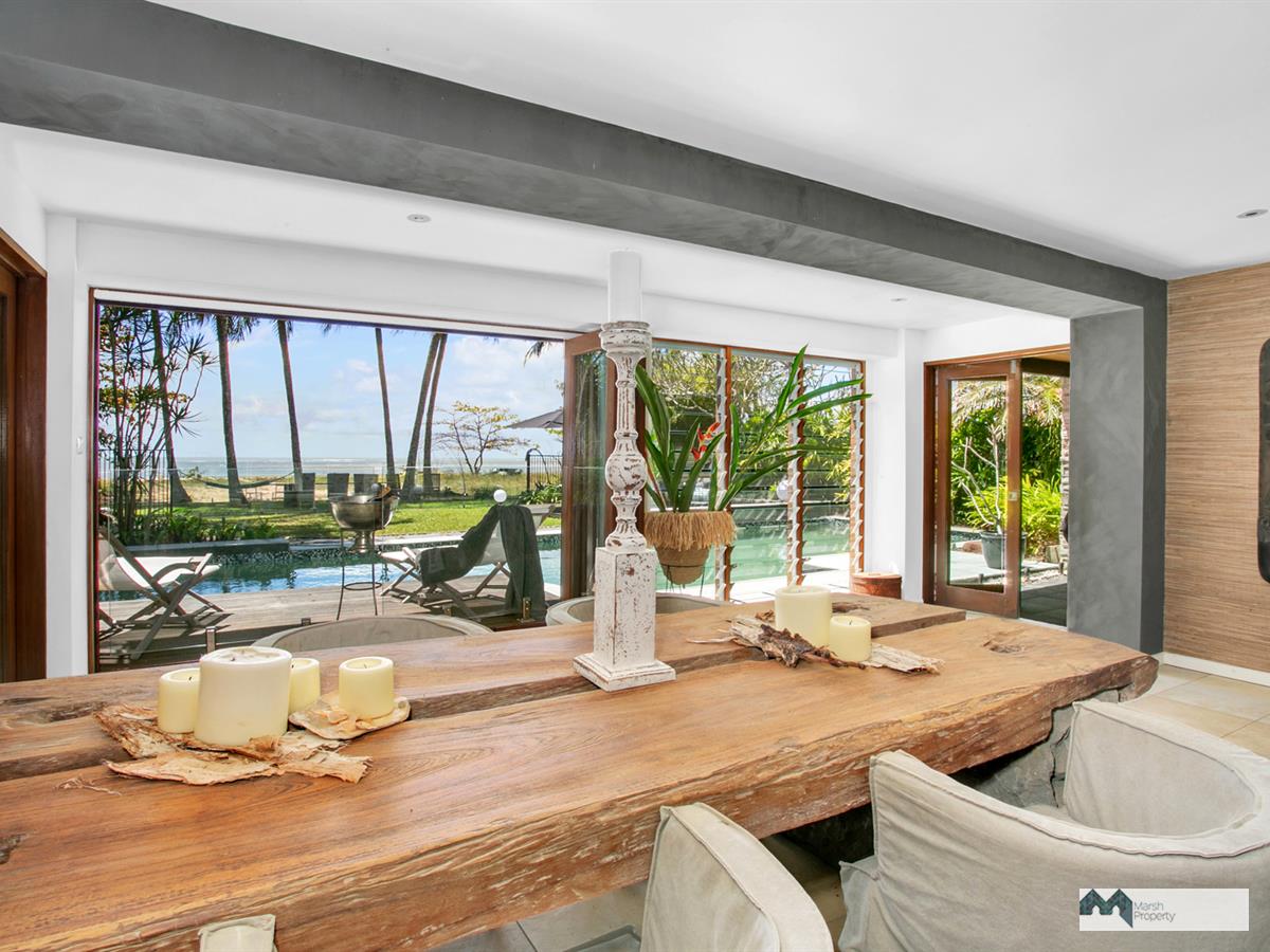 Step directly onto the sands of magical Cinderella St. & see why this is one of the most desirable streets, not just in Cairns, but the entire Far Nth. Qld. region. This home has been designed to create a private resort style vibe where every day feels like a holiday. “Six Palms” was named for the 6 coconuts palms on the beachfront, framing the stunning Coral Sea views visible from almost every room in the home.