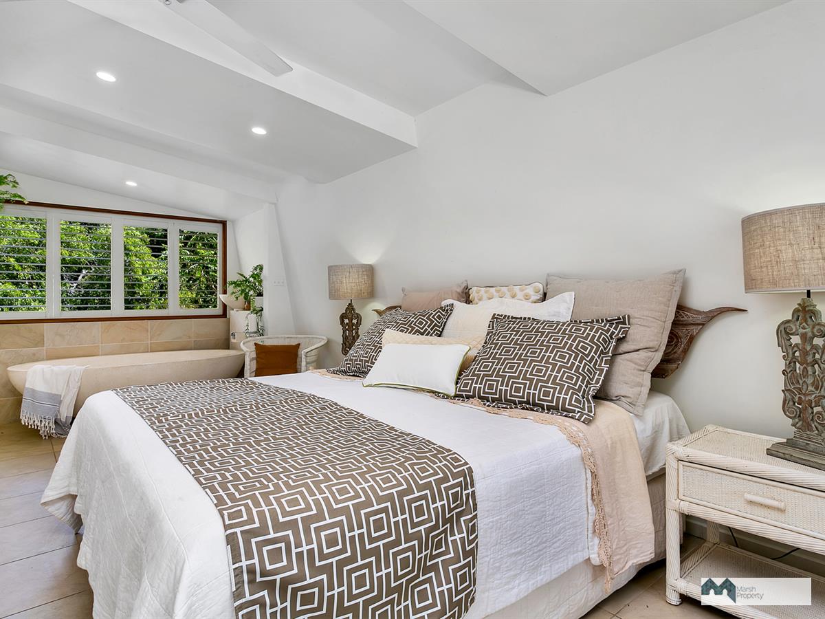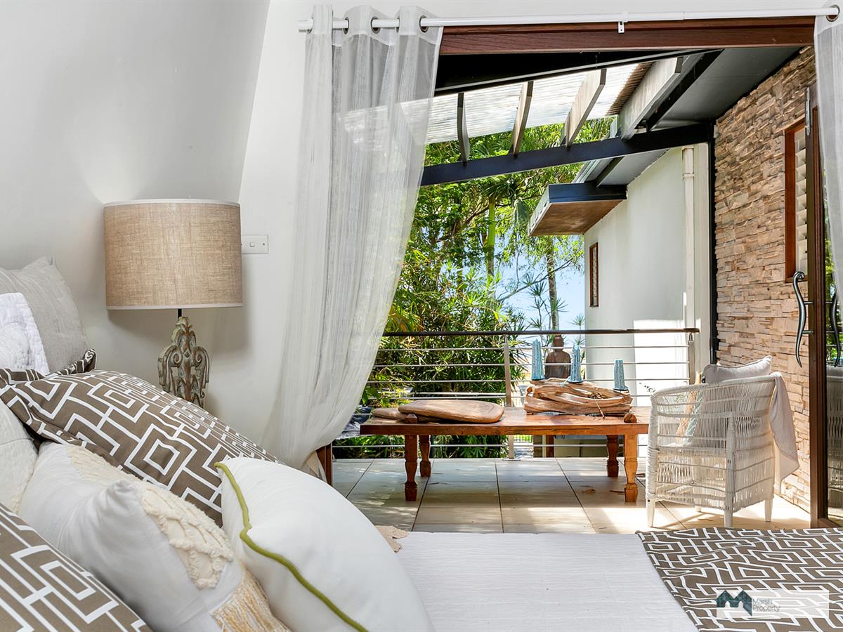 Once inside, a stunning custom staircase designed in contemporary style using 100 year old teak treads, leads to the upstairs living spaces. However, your eye will be immediately drawn first to the beach and water views, through glass louvres overlooking the 12 metre pool. This home is all about blurring the lines between indoors and outdoors with timber bi-fold doors, cooling louvres and frameless glass balustrading, ensuring beautiful light filled spaces throughout.
