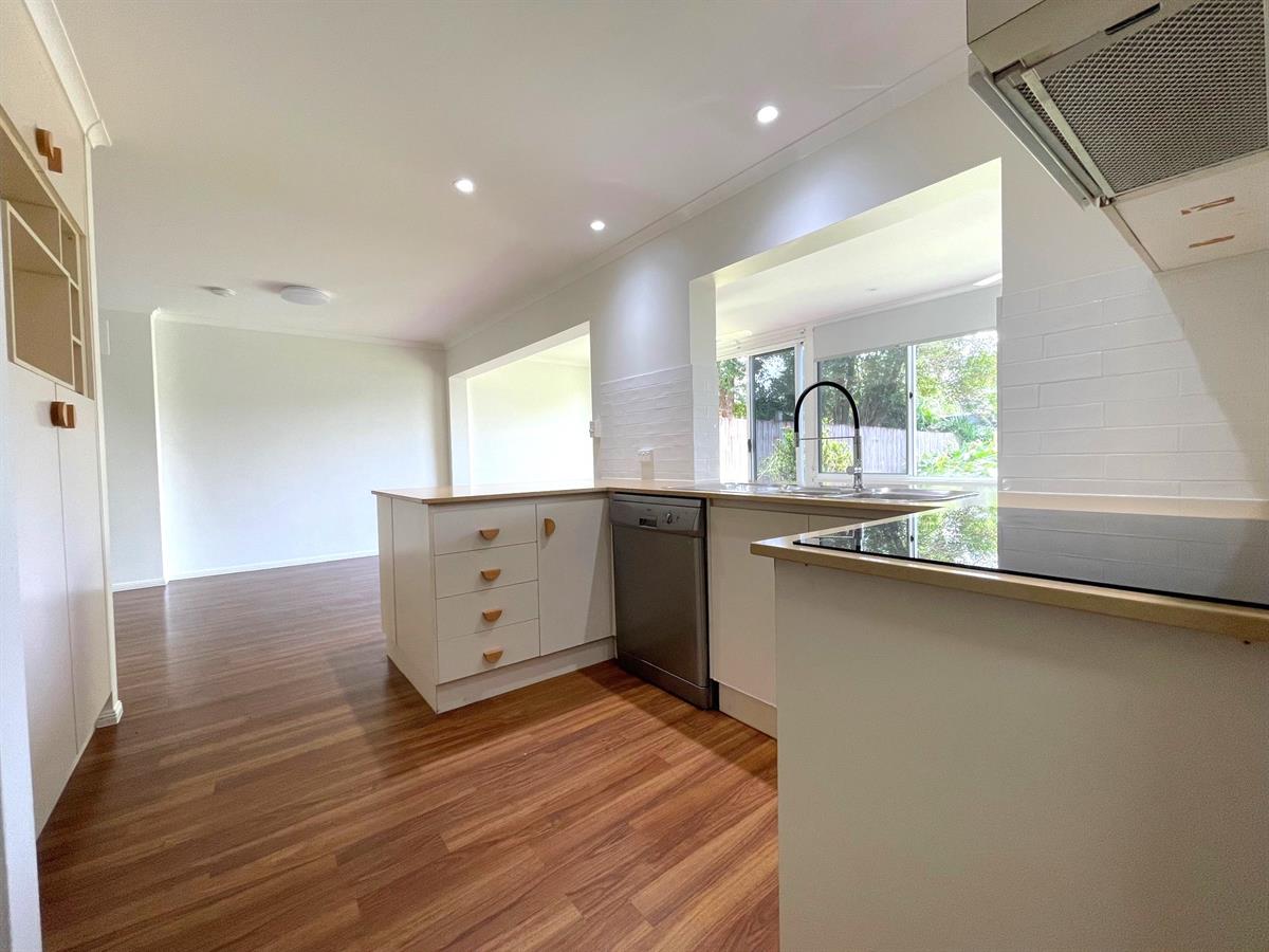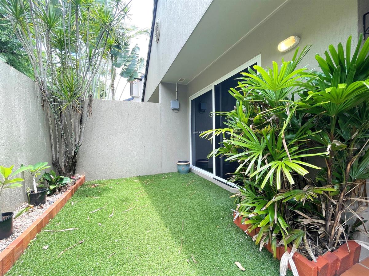 The bedrooms and 2 bathrooms are upstairs and downstairs living comprises of a gorgeous refurbished kitchen plus separate laundry and separate powder room. The kitchen overlooks a huge, enclosed patio overlooking the rear private tropical garden.