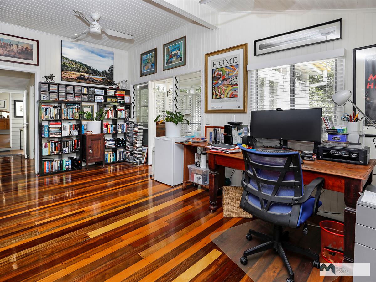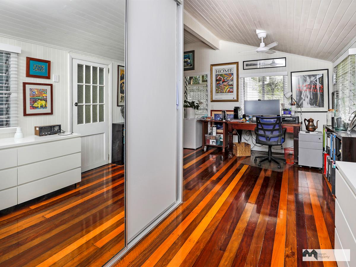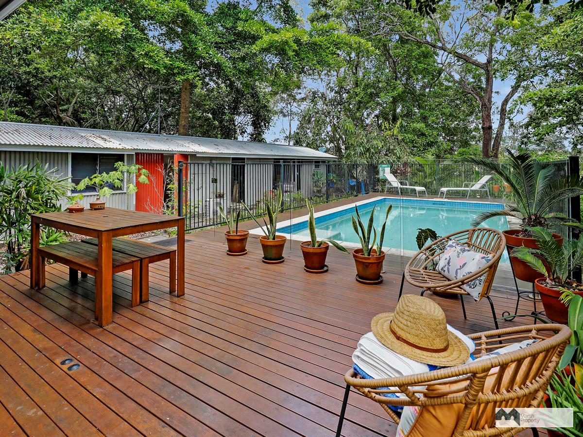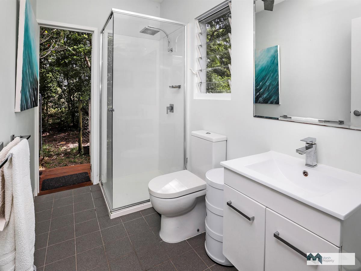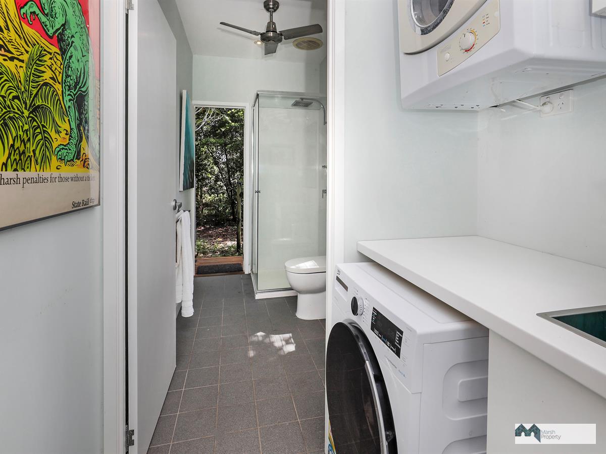 The newer architecturally designed pavilion contains a modern kitchen, large bathroom incorporating the laundry, one formal bedroom and a magnificent indoor-outdoor lounge opening seamlessly onto a wrap-around deck overlooking a 7m X 4m pool. There is also the added benefit of a detached building comprising of shed, storage room and two air-conditioned studios, one of which could easily covert to a 3rd bedroom.