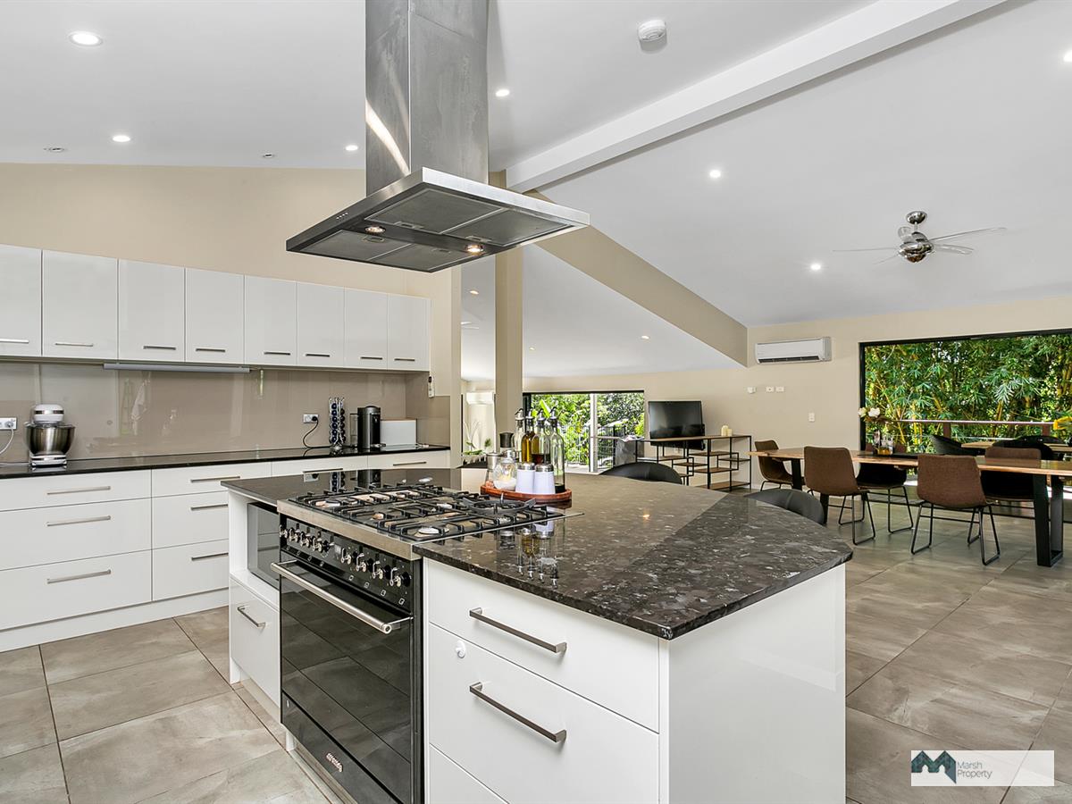 With over 500m2 under roof and tucked away at the top of a private road and driveway, this home offers the convenience of being close to Cairns CBD without compromising on space & total privacy in a secluded tropical garden & bushland setting.