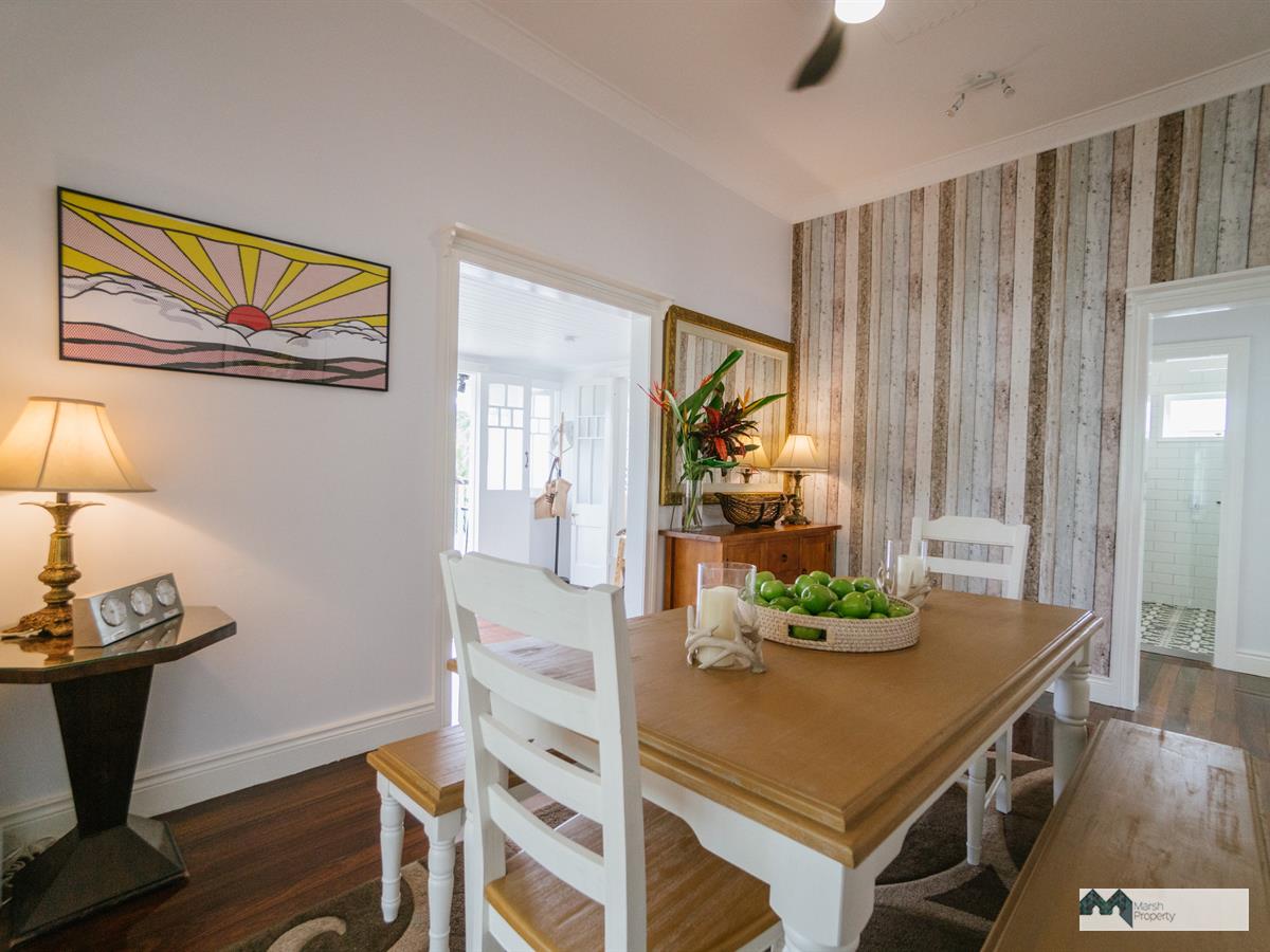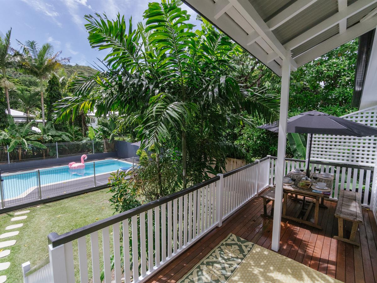 Stylish and yet unpretentious the high set home consists of spacious verandah style living spaces, 3 bedrooms, one bathroom plus a separate toilet. The beautifully equipped kitchen opens out to a recently added rear dining deck overlooking a private tropical back yard with inground pool.