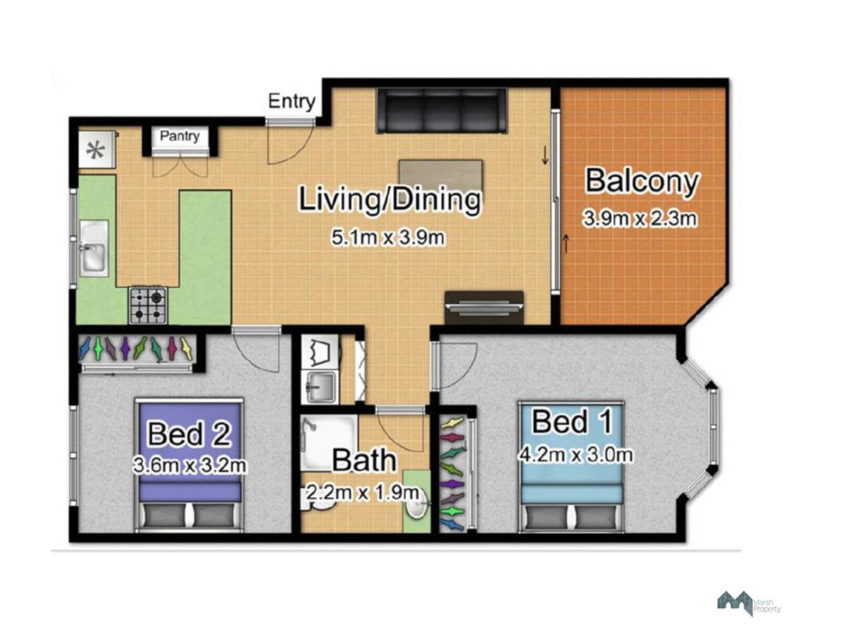 This exceptionally generous, top floor, fully furnished unit is primed for owners or investors alike. The unit boasts 2 large double bedrooms with a neutral colour palette, main with floor to ceiling bay windows.