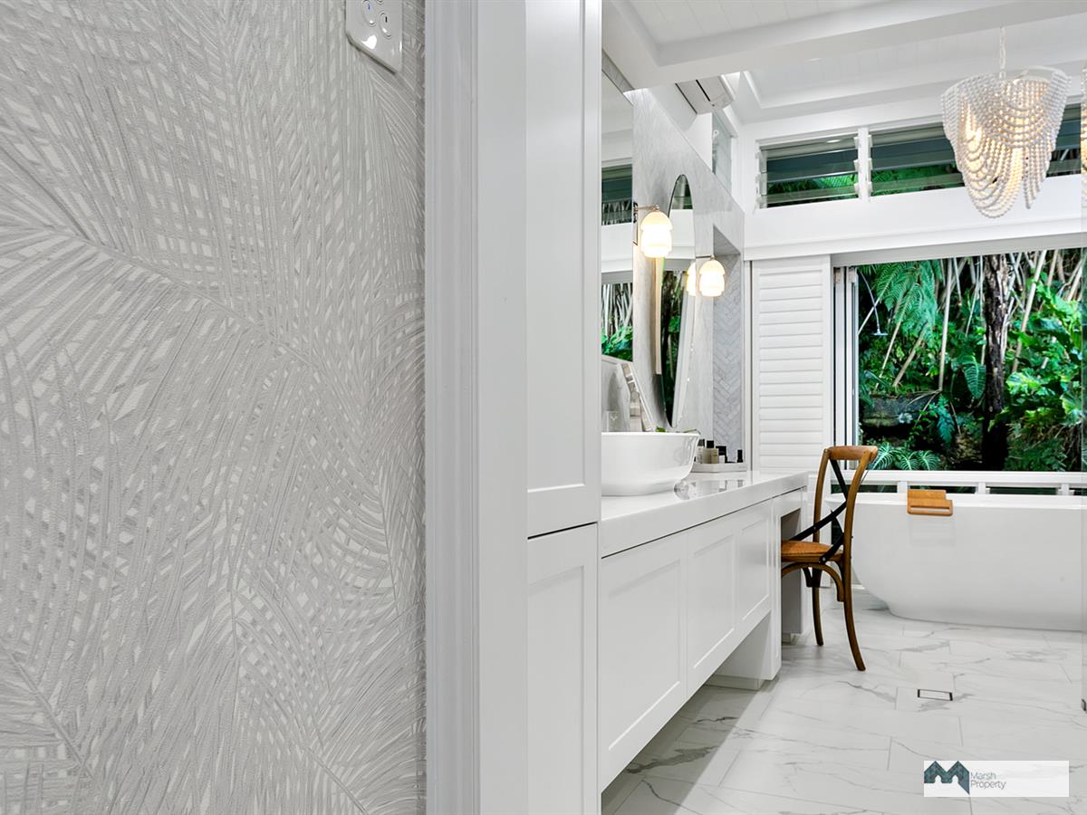 The gorgeous main bedroom with designer marble ensuite, views to die for and a walk-in robe, creates an absolutely luxurious sanctuary, which is further enhanced with a totally private tropical garden shower. Accommodation expands to a separate wing comprising two additional queen-sized bedrooms; both of which are ensuite, with robes and stylish marble tiled bathrooms.
