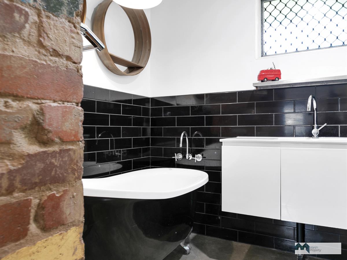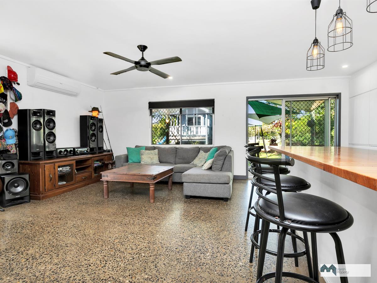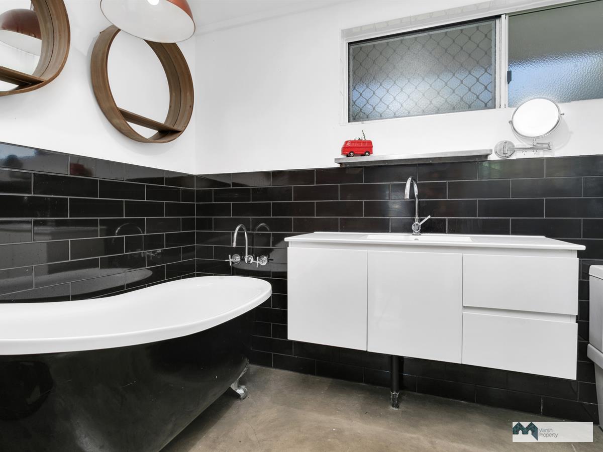 The main bathroom has both a bath and shower and features subway tiles and a magnificent feature wall of old red bricks recovered from the Cairns North School. The laundry cleverly encompasses the second bathroom and has also been given a sympathetic overhaul matching the main bathroom in style. Window treatments throughout have double roller blinds providing both privacy and sun block and the home has been insulated and is airconditioned.