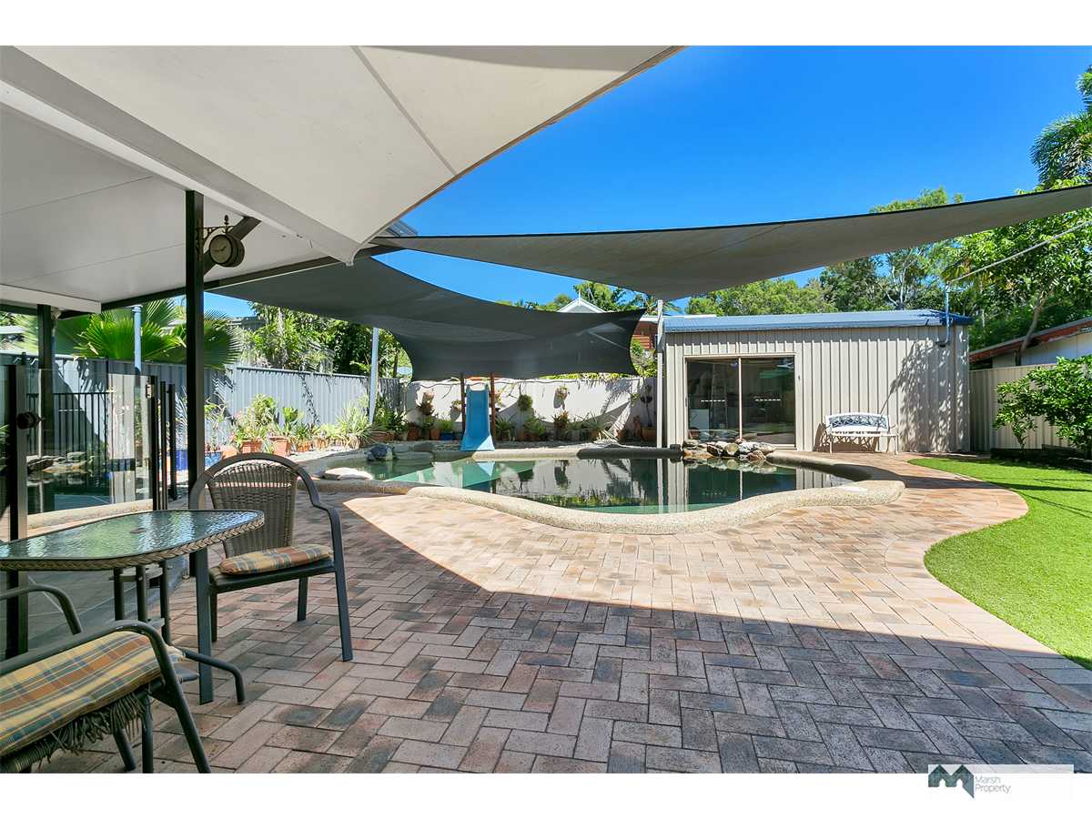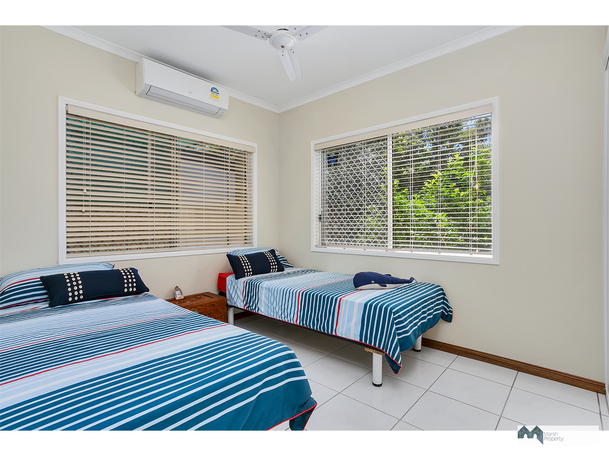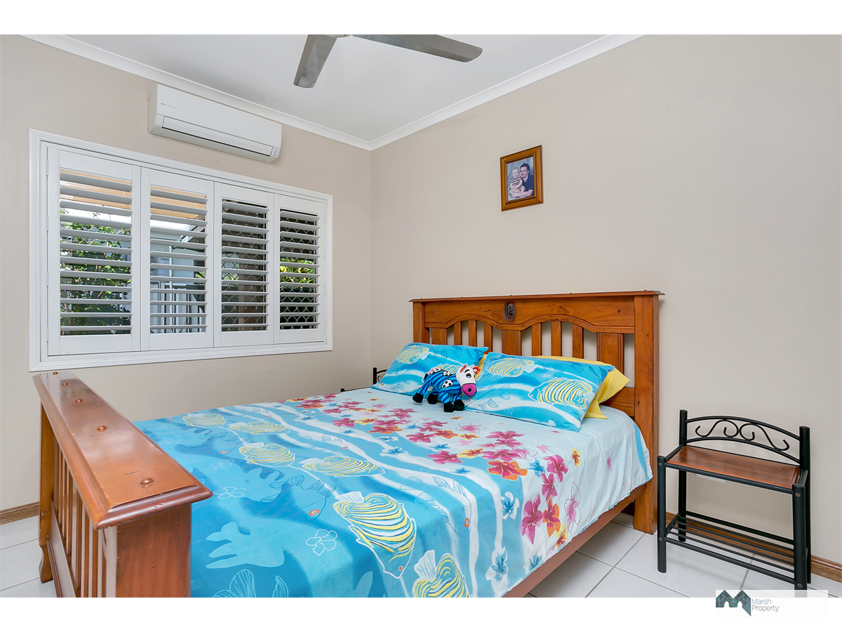 Fully airconditioned and complete with rear shed, above ceiling storage access via a drop down ladder and lovely tropical gardens.