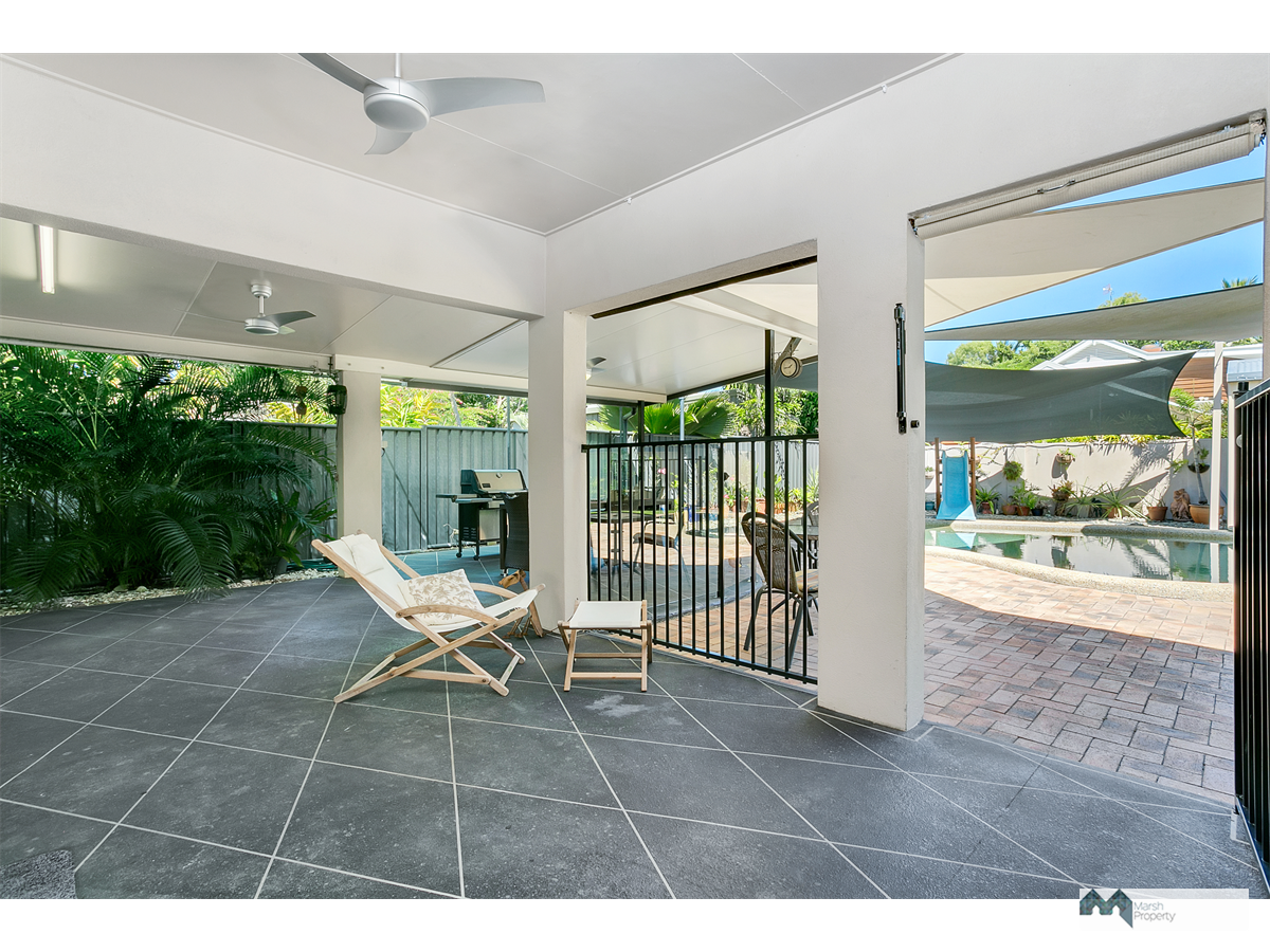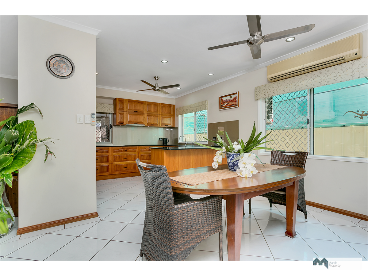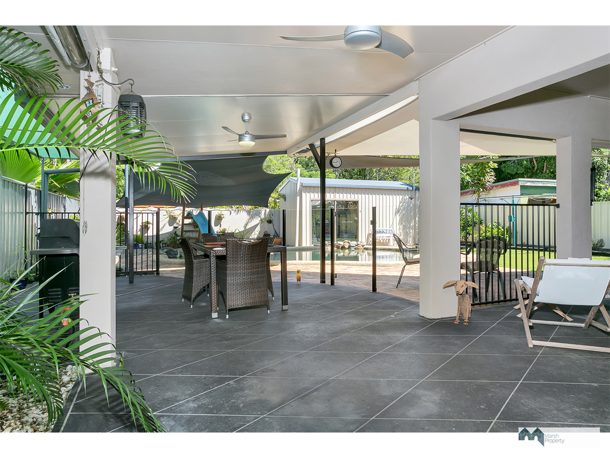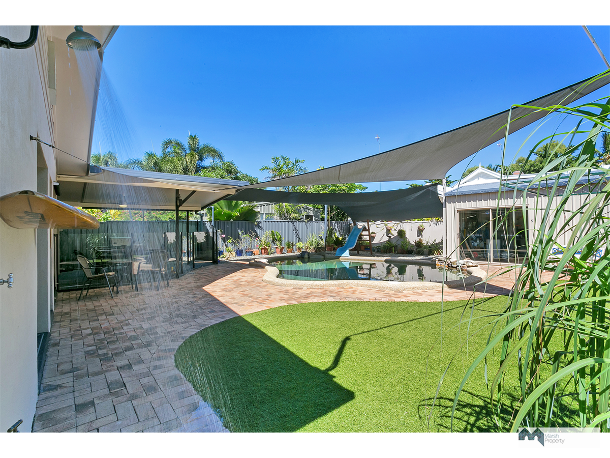 Fully airconditioned and complete with rear shed, above ceiling storage access via a drop down ladder and lovely tropical gardens.