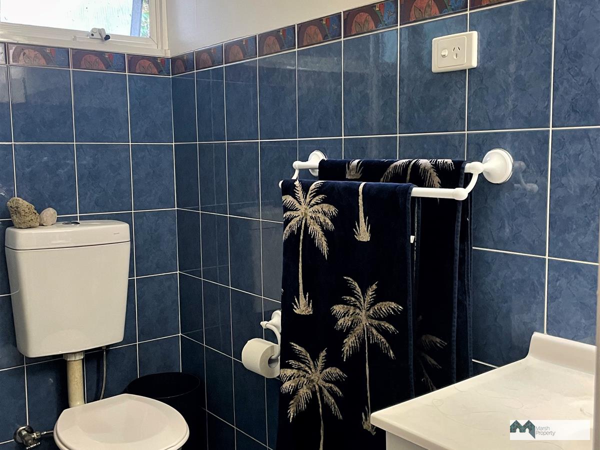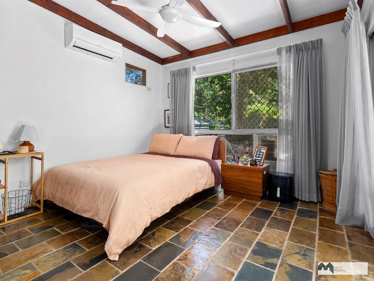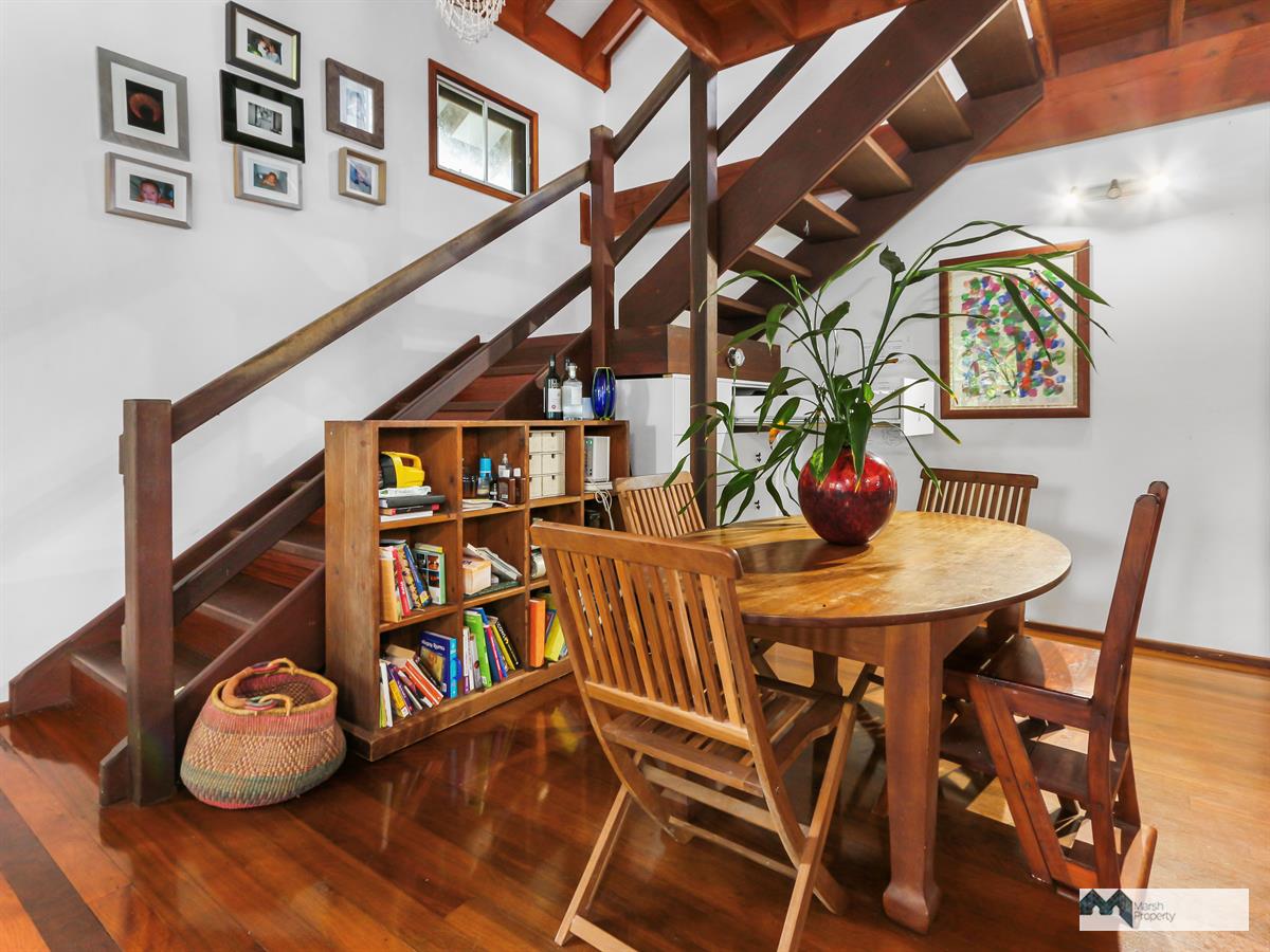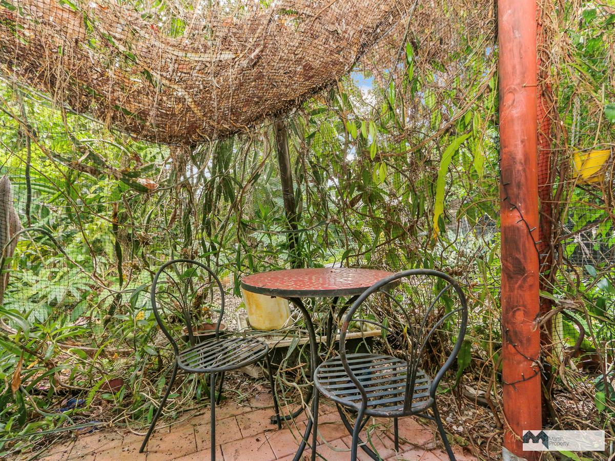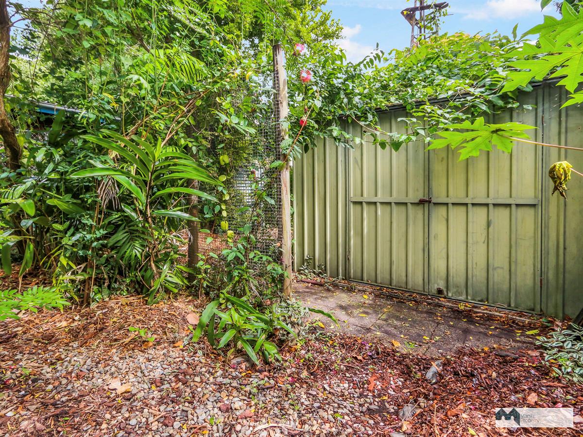 The house sits comfortably in the middle of the 539m2 block and is virtually hidden from the street behind established trees and tropical plantings. It is approached via a raised timber deck which opens into a spacious lounge / dining room and adjacent kitchen. The three bedrooms downstairs all have magnificent views into gardens with green walls of passionfruit and butterfly vines; a secluded piece of paradise.