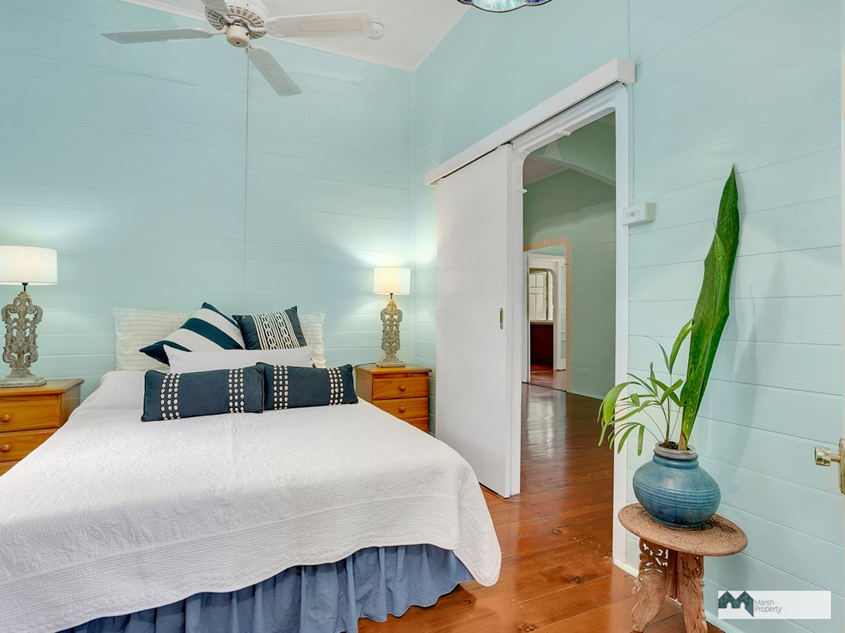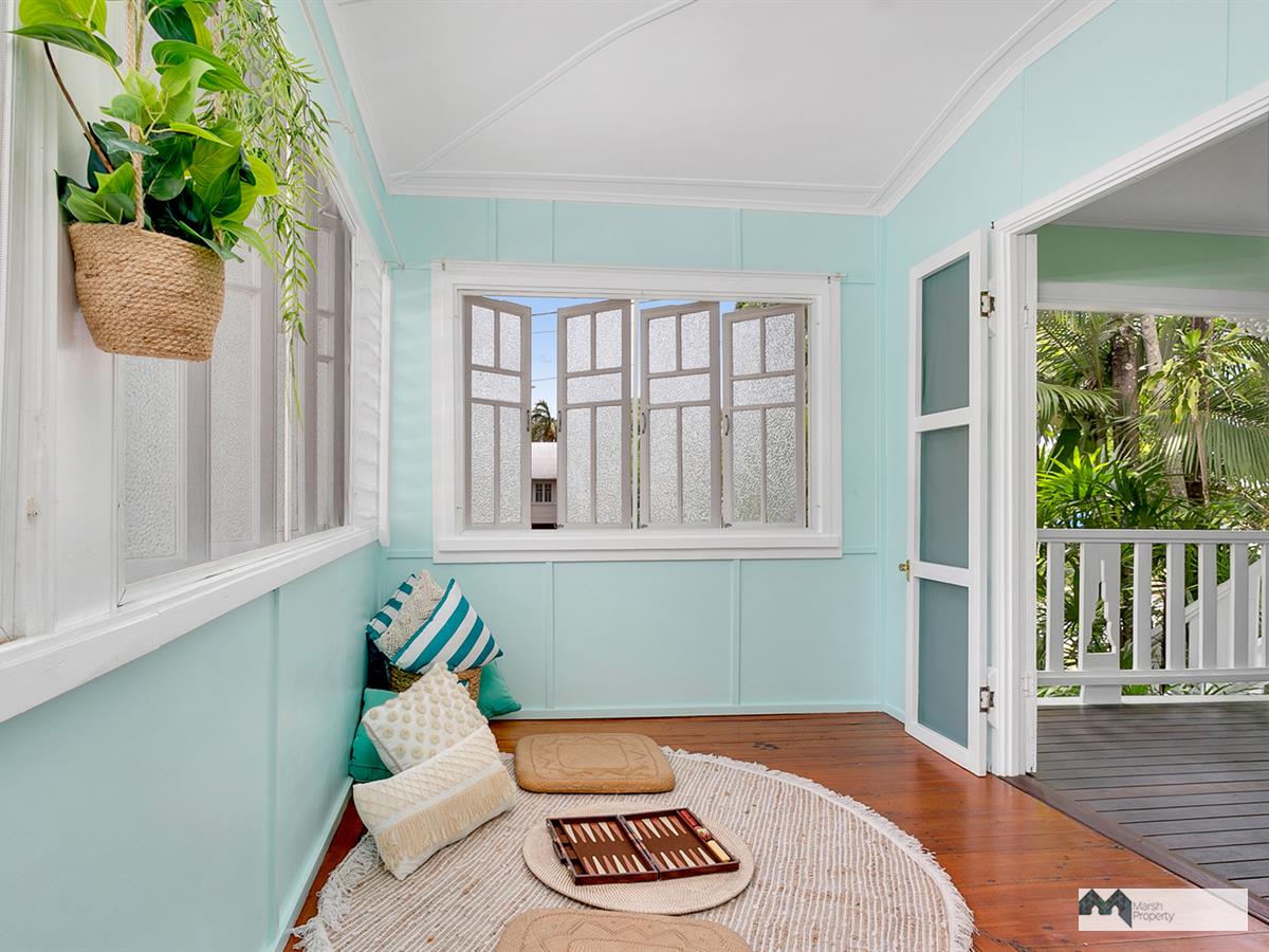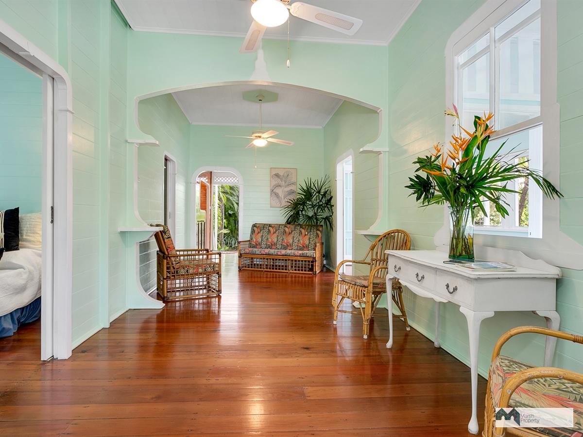 The four charming light filled bedrooms feature beautiful casement windows & matching sliding french doors through to the central living space. Two of the bedrooms open directly onto the spacious front verandah, overlooking beautiful tropical gardens which create privacy from the street front. Either of these bedrooms could double as an office or utility room if required.