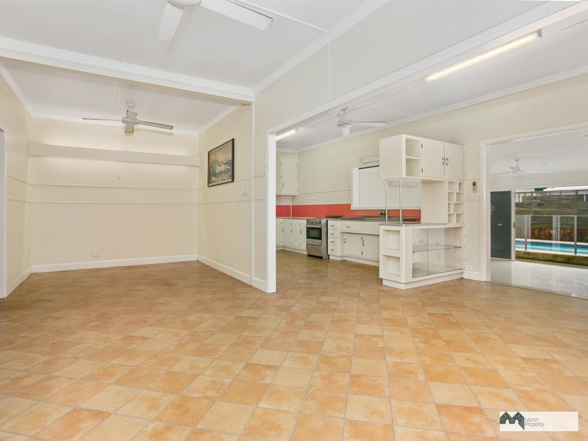 The three original bedrooms are spacious and all have built-in robes, split air conditioning plus beautiful polished hardwood flooring. The main bathroom has both bath and shower and is central to the bedrooms and original lounge area with vinyl over the original floorboards. The spacious kitchen is an absolute classic with red Formica benchtops and splashback. The cupboards and drawers are in very good condition and still very serviceable for those wishing to retain the original style. Flowing down a couple of steps is the new extension with huge volume and contemporary tiled floors. A large poolside cabana with built-in BBQ and drinks fridge completes the picture.