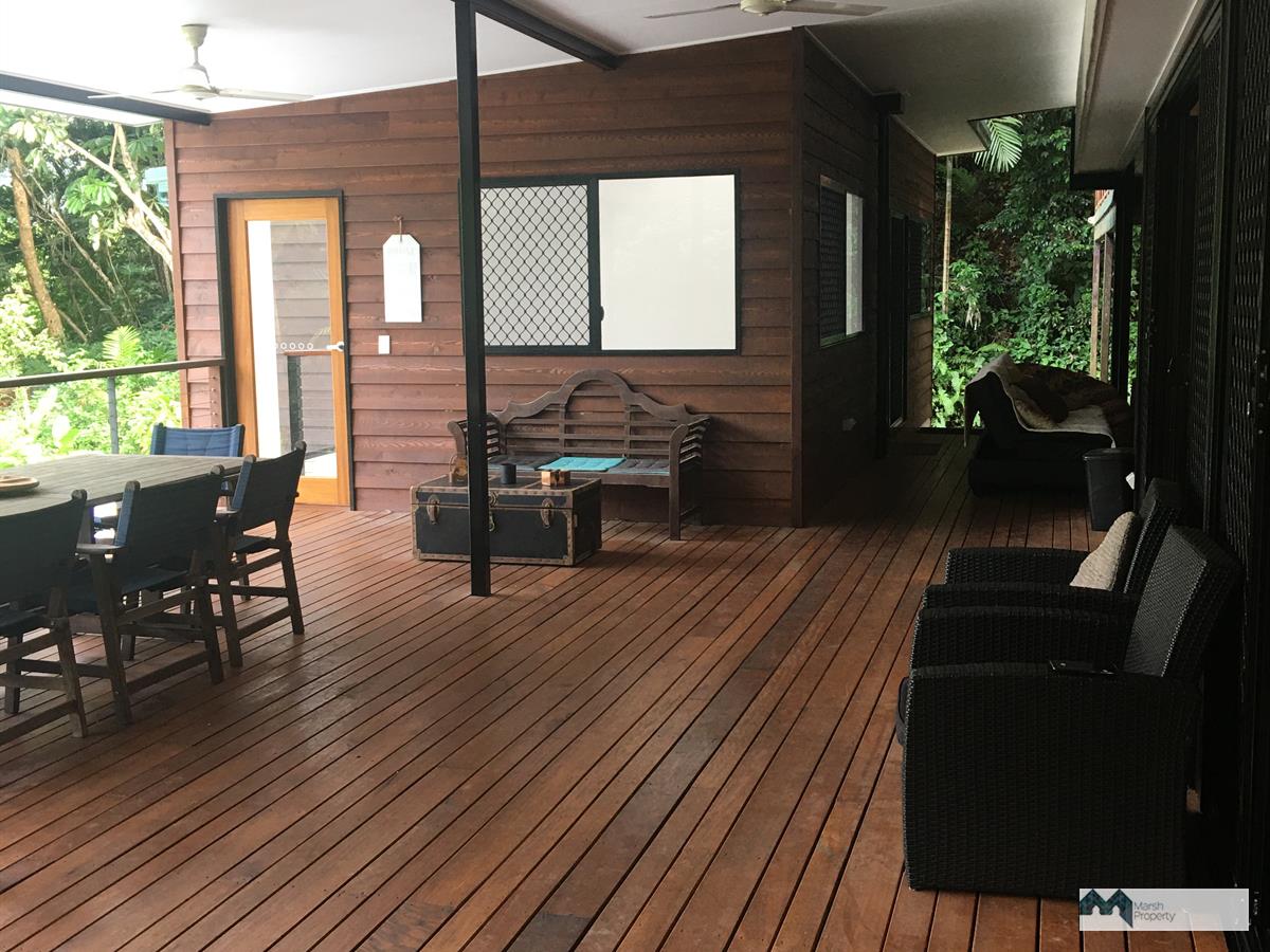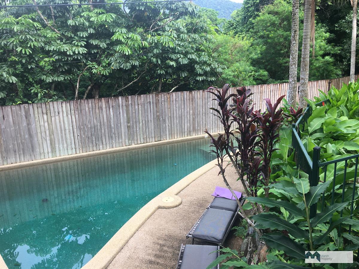 This property is located on a private driveway access in Brinsmead with no neighbours. Positioned in the rainforest & views across Redlynch Valley, sit back & relax on the expansive timber decking overlooking the pool & gazebo complete with fire pit.