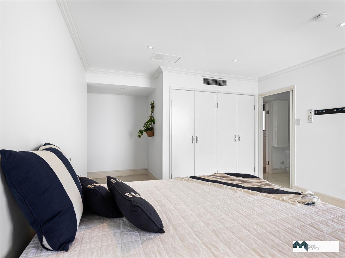 • master bedroom with king bed, ensuite, walk-in robe, and private ocean-view balcony