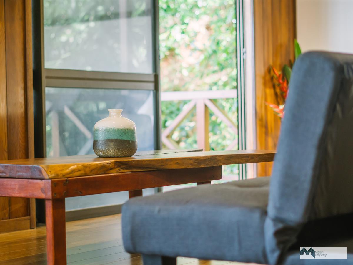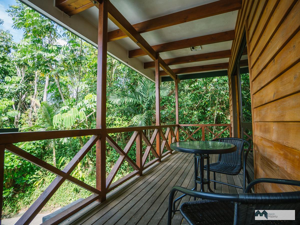Fully furnished, self contained & also including electricity, enjoy the peace & quiet from your full length balcony surrounded by rainforest.