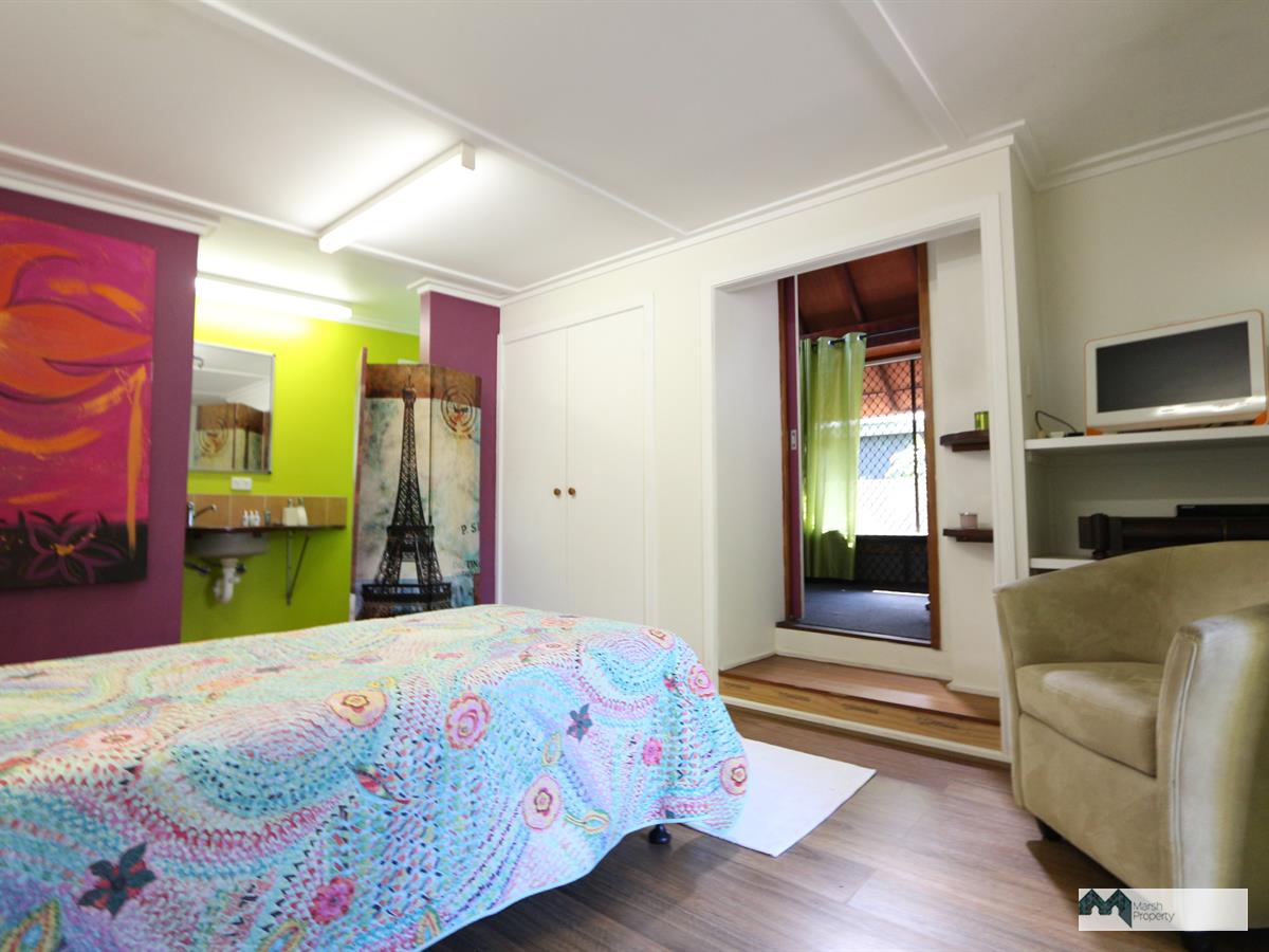 The detached granny flat across the yard consists of two rooms, a toilet and bathroom and its own deck area, which is fully accessible via a side access path from the front of the property.
