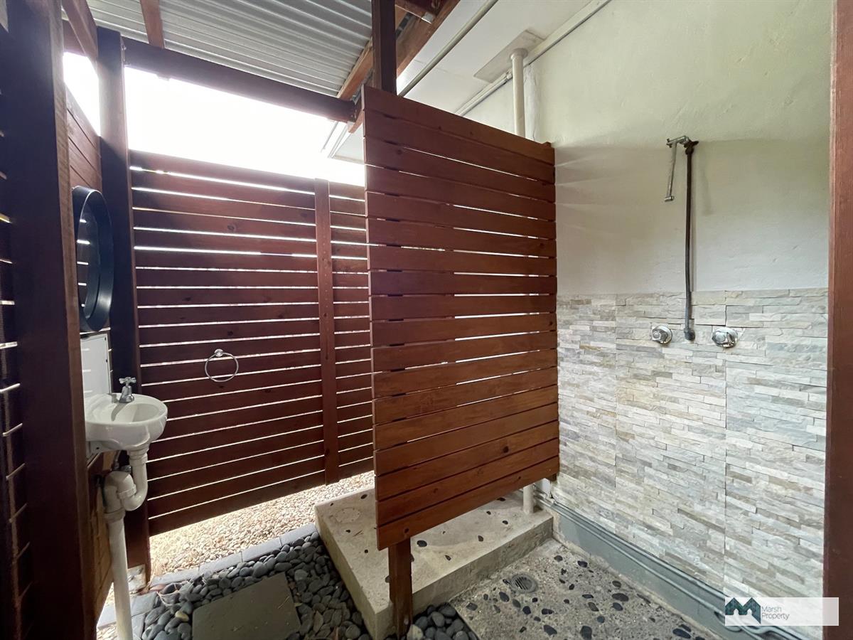 • Two Bathrooms: Including a unique external bathroom off the rear patio.