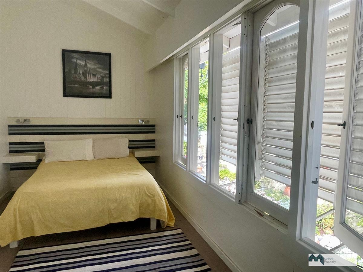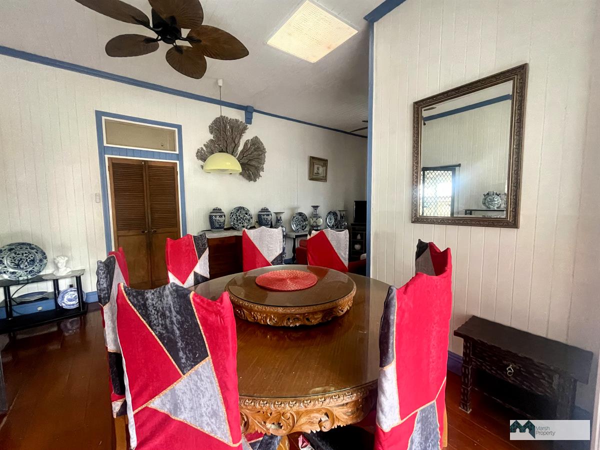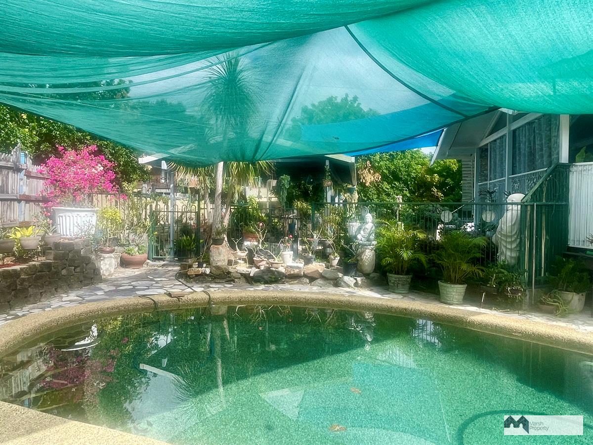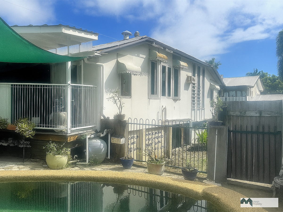 This charming high-set home is partly renovated and offers three spacious bedrooms, blending classic appeal with modern comfort. The updated kitchen flows seamlessly to an inviting outdoor living space, where a covered dining deck overlooks a generous in-ground pool—ideal for entertaining or unwinding in the tropical climate.