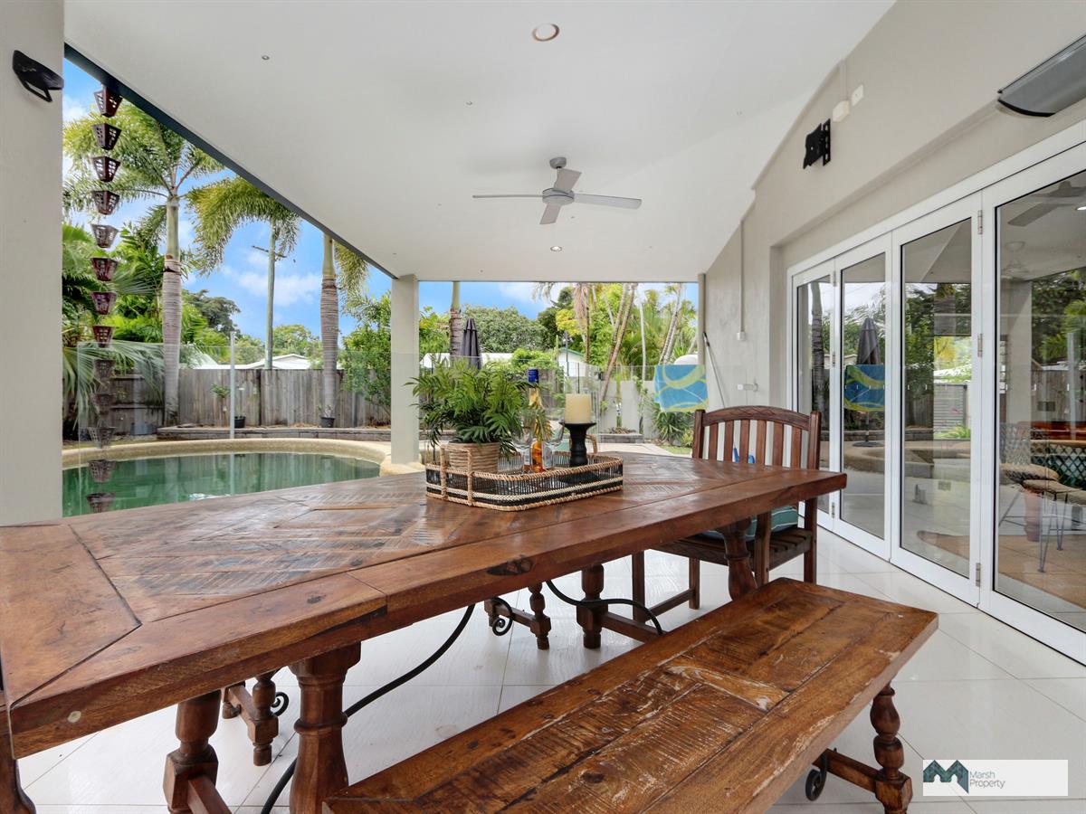 Located in highly sought Trinity Beach, this impressive family home will be sure to satisfy the needs of the most discerning buyers; particularly those looking for an inter-generational home. Offering a blend of privacy and luxury on an 815m2 parcel with 55 metres of frontage to Strombus Avenue this well-proportioned home on a triangular block is situated in Central Trinity with an easy stroll to the beach, moments to cafes, restaurants, boutique shops, and park with playground. The property is surrounded by tropical landscaping, presenting an idyllic retreat for all the family to enjoy.