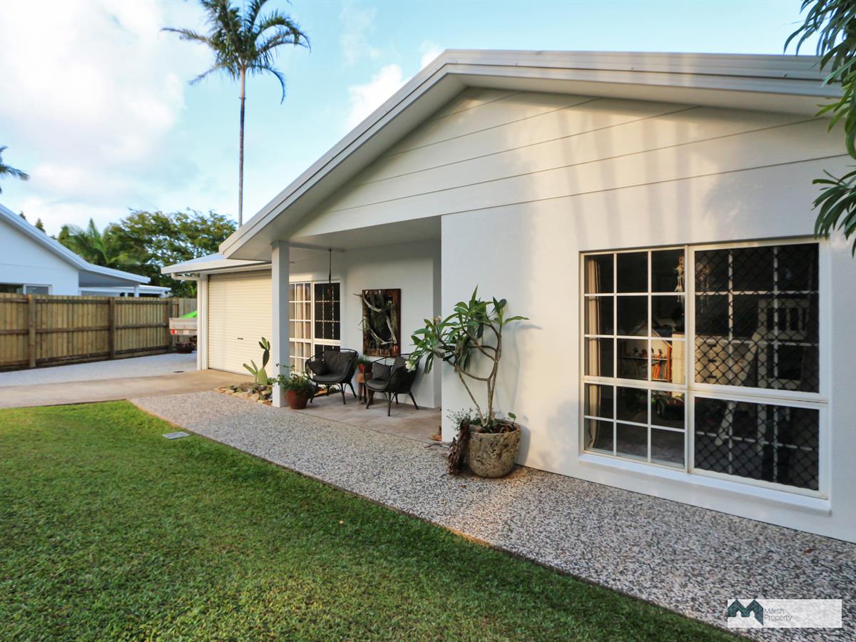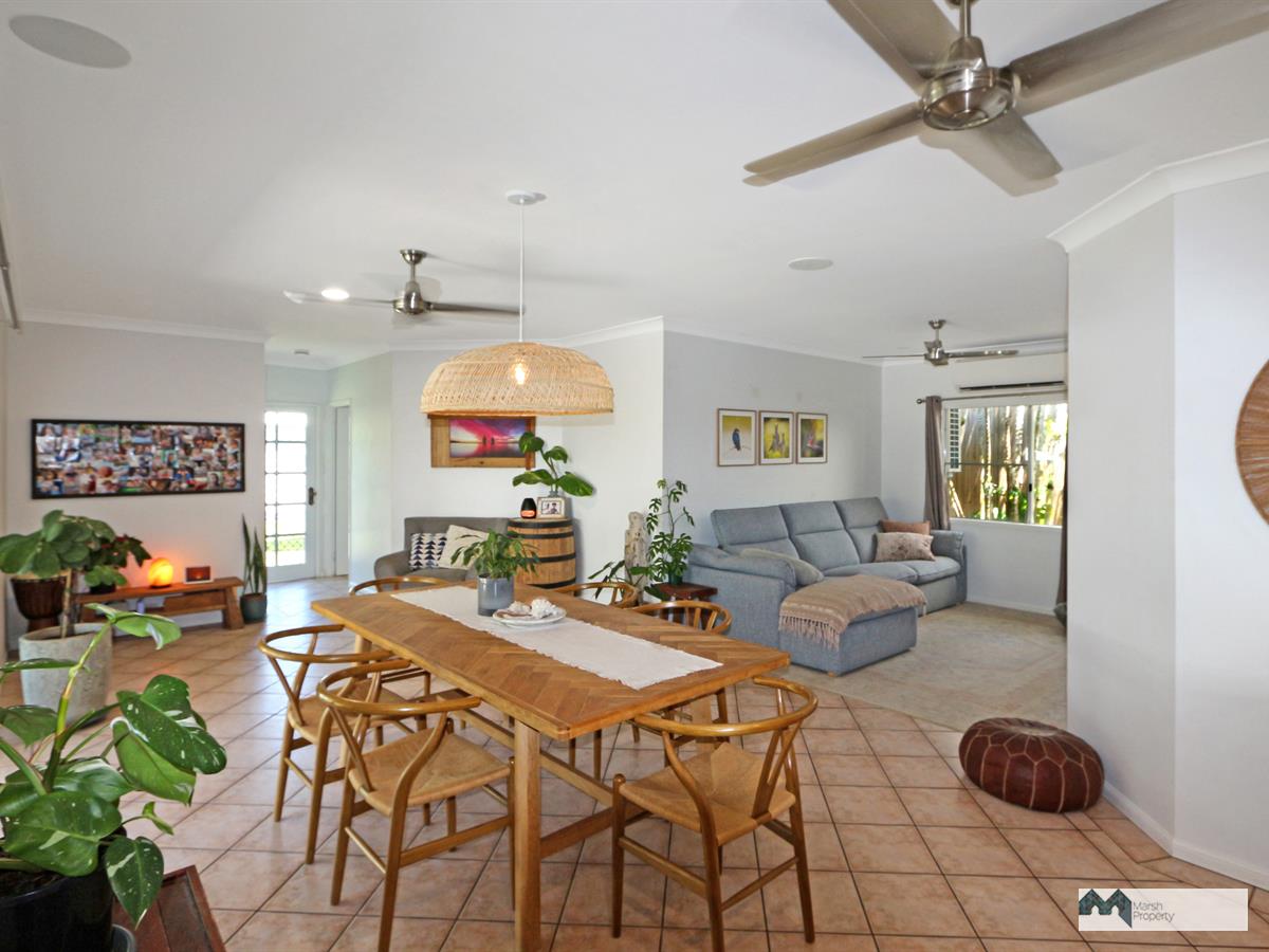 Perfectly positioned in a quiet cul-de-sac with parklands and nature walks at your doorstep, and only 5 minutes to Kewarra Beach. The home features a spacious open-plan living, dining, and kitchen area with a large island bench and breakfast bar. The kitchen includes classic timber cabinetry, ample storage, and gas cooking.