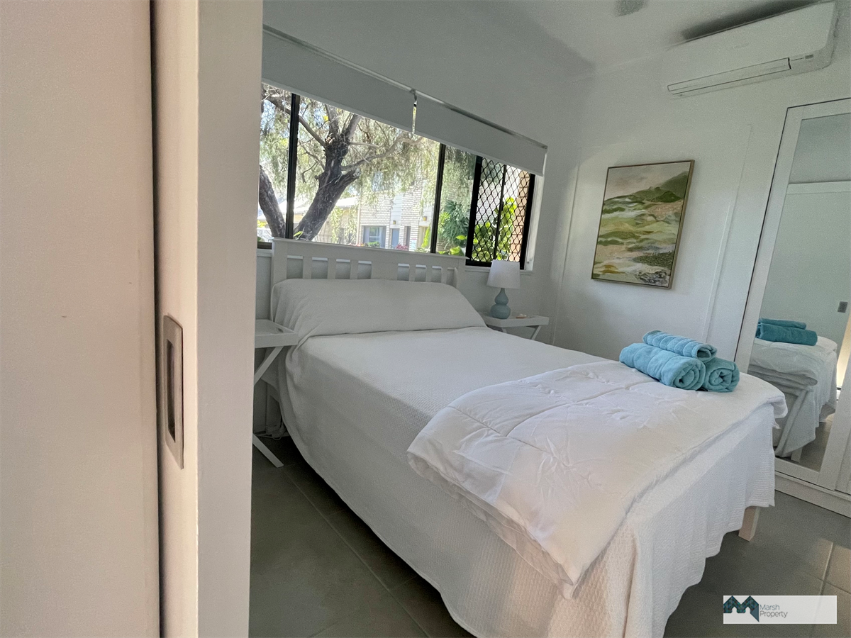 This newly renovated unit has been totally refurbished with style. Fully furnished with a calming beach vibe, it is ready to just bring your own linen unpack and relax.