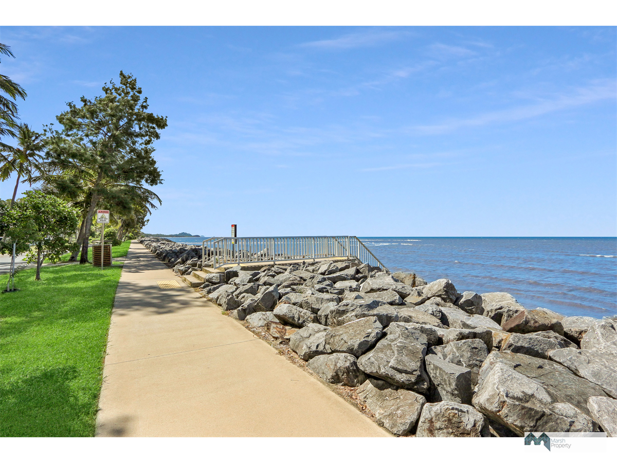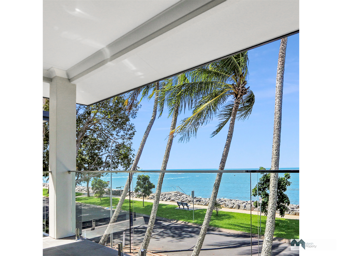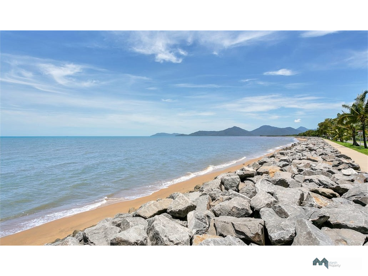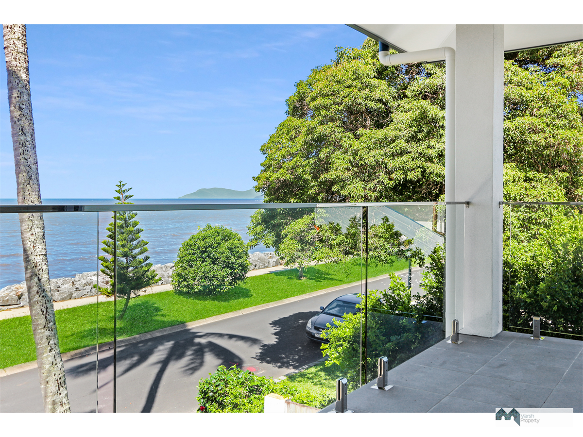 This modern unit overlooks the Coral Sea and barrier reef waters beyond from the prime beachfront position on O'Shea Esplanade, Machans Beach - the ultimate spot to unwind at the end of a busy day, watching the moon rise over the water.