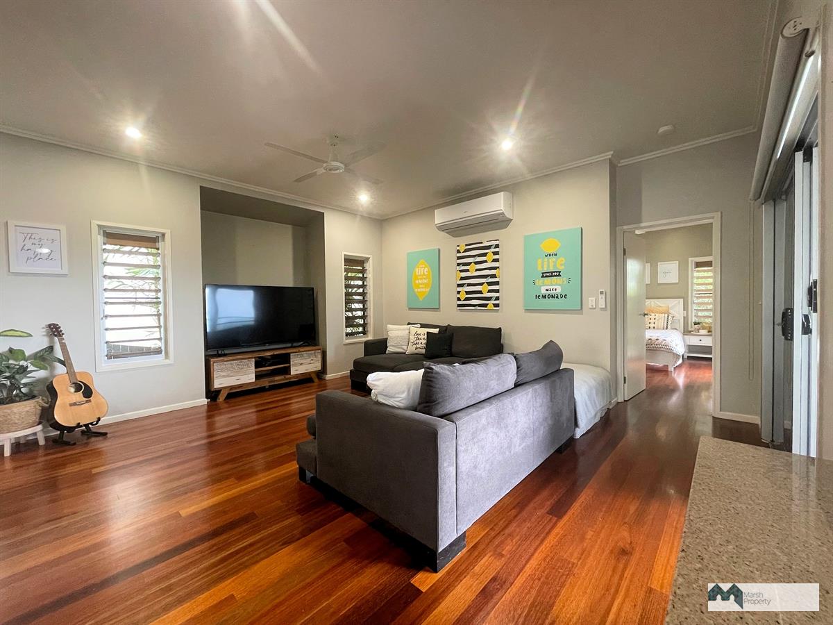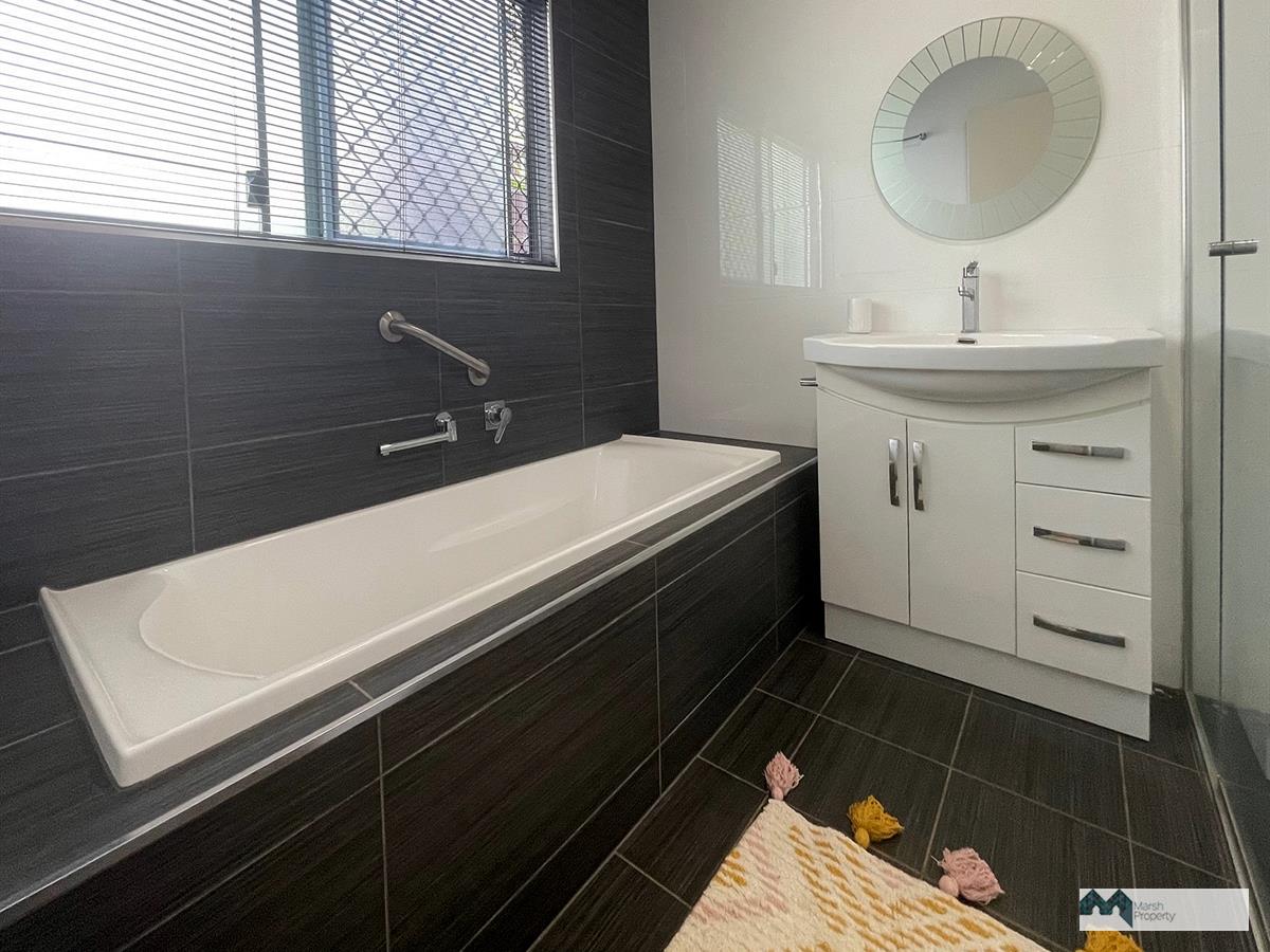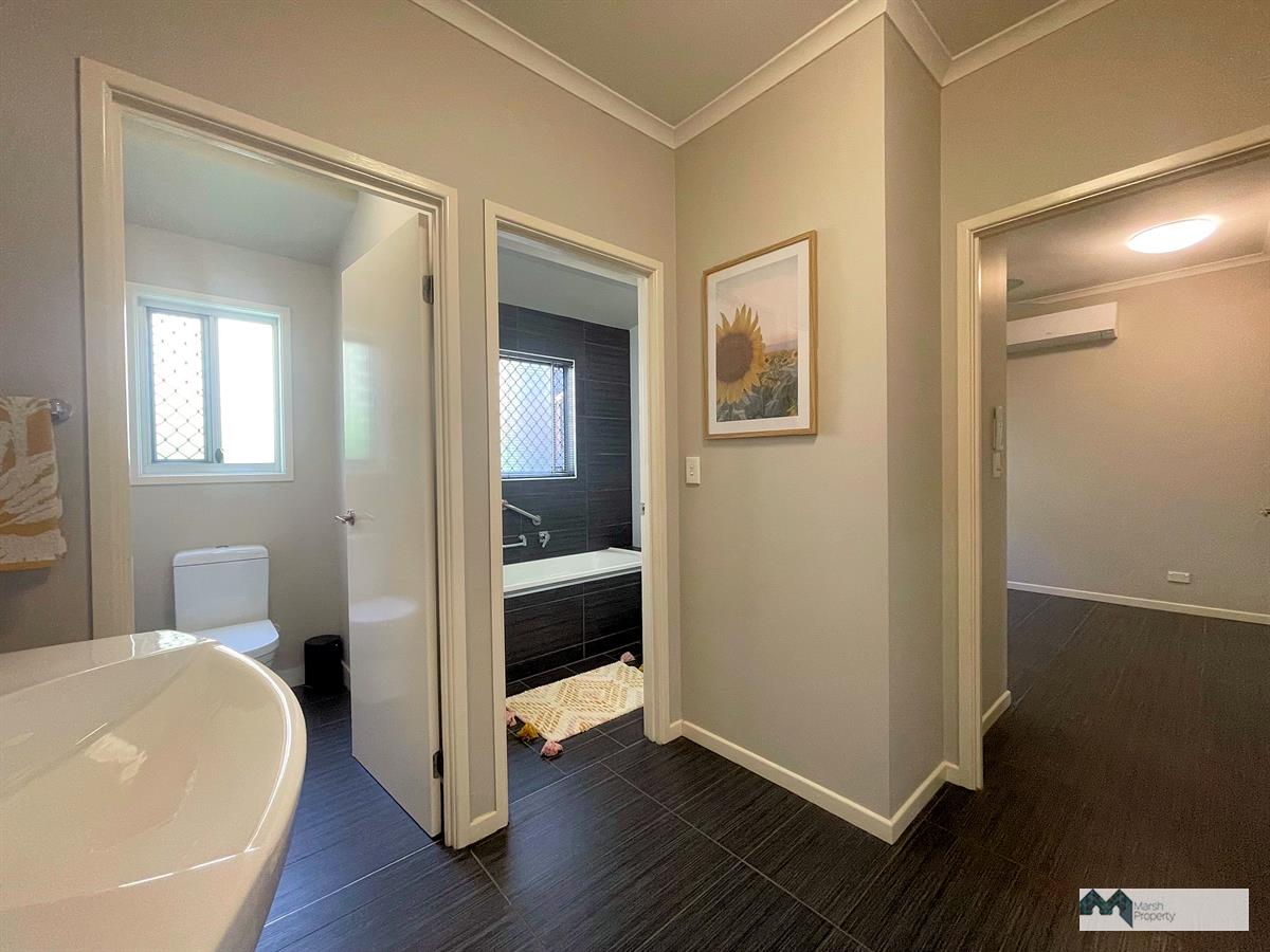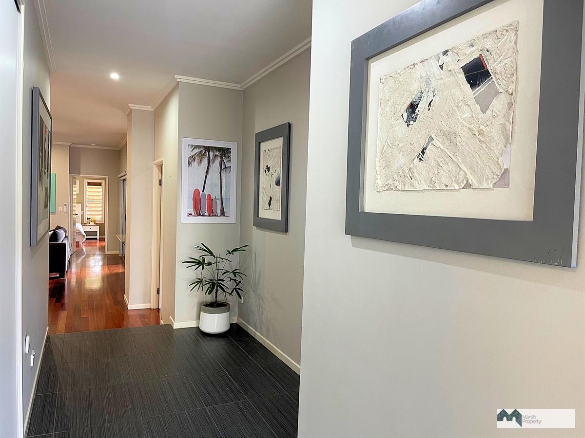 At the end of a busy day retreat to the master bedroom, complete with walk-in robe, stylish ensuite featuring a double vanity and direct access to the deck. The home offers two additional bedrooms and a guest bathroom in a separate wing, ensuring privacy for both primary residents and visitors alike. The central 4th bedroom with direct deck access is currently used as an office.